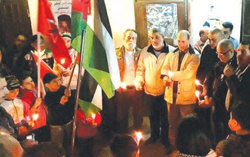 تحية لـ «اليرموك» و«القدس» إضاءة شموع أمام مكتب «الديمقراطية» في البداوي