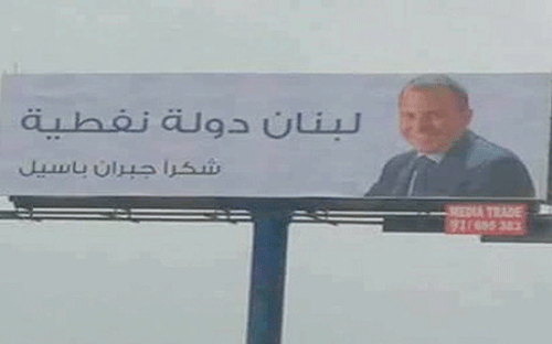 وقد كان الناشط بيار حشاش اول من اطلق تعليقا ساخرا على اليافطة، متسائلا عن علاقة باسيل بالنفط وان من يجب شكره على نعمة النفط في لبنان هو الله.