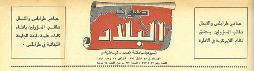 – في 15 أيلول 1971 أطلقت «دار البلاد» في حينه، وقبل إصدار «التمدن»، جريدة «صوت البلاد» المطالبة بإنشاء كليات تابعة للجامعة اللبنانية في طرابلس.