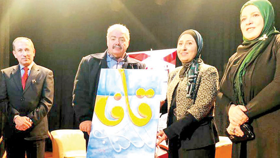 النشيد الوطني، ثم ألقت د. عائشة فتحي يكن كلمة «نادي قاف للكتاب»، قالت فيها: