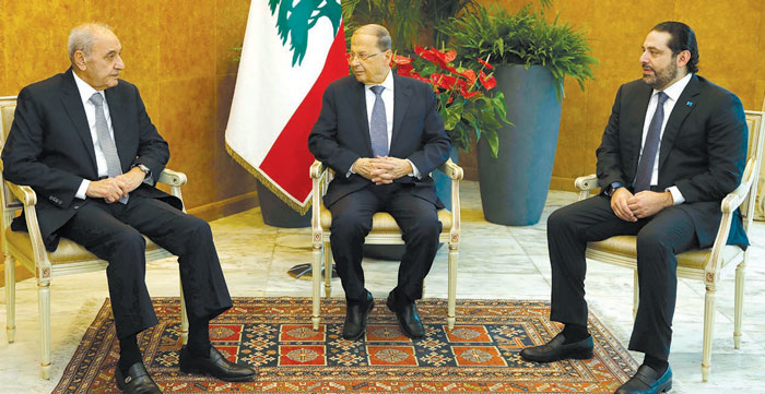 إزاء ذلك تحرك لبنان الرسمي على غير صعيد، حيث عقد الرؤساء الثلاثة (عون، بري، الحريري) اجتماعاً في قصر بعبدا ناقشوا فيه الأوضاع العامة، لا سيما التهديدات الإسرائيلية ضد لبنان وسيادته واستقلاله، والتي تمثلت بعزم إسرائيل بناء جدار اسمنتي قبالة الحدود الجنوبية وفي نقاط على «الخط الأزرق» يتحفظ عنها لبنان، إضافة إلى الادعاءات التي أطلقها «ليبرمان» حول البلوك رقم تسعة.