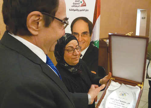 وفي الختام سلمت السيدة وصفية حامد للدكتور محمد سلهب درعاً تكريمية باسم الجمعية.