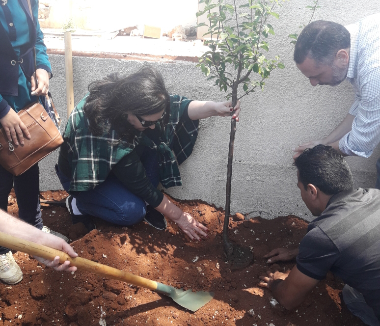 وفي نهاية الاحتفال تم غرس اشجار في التربة كعربون محبة لأرضنا.