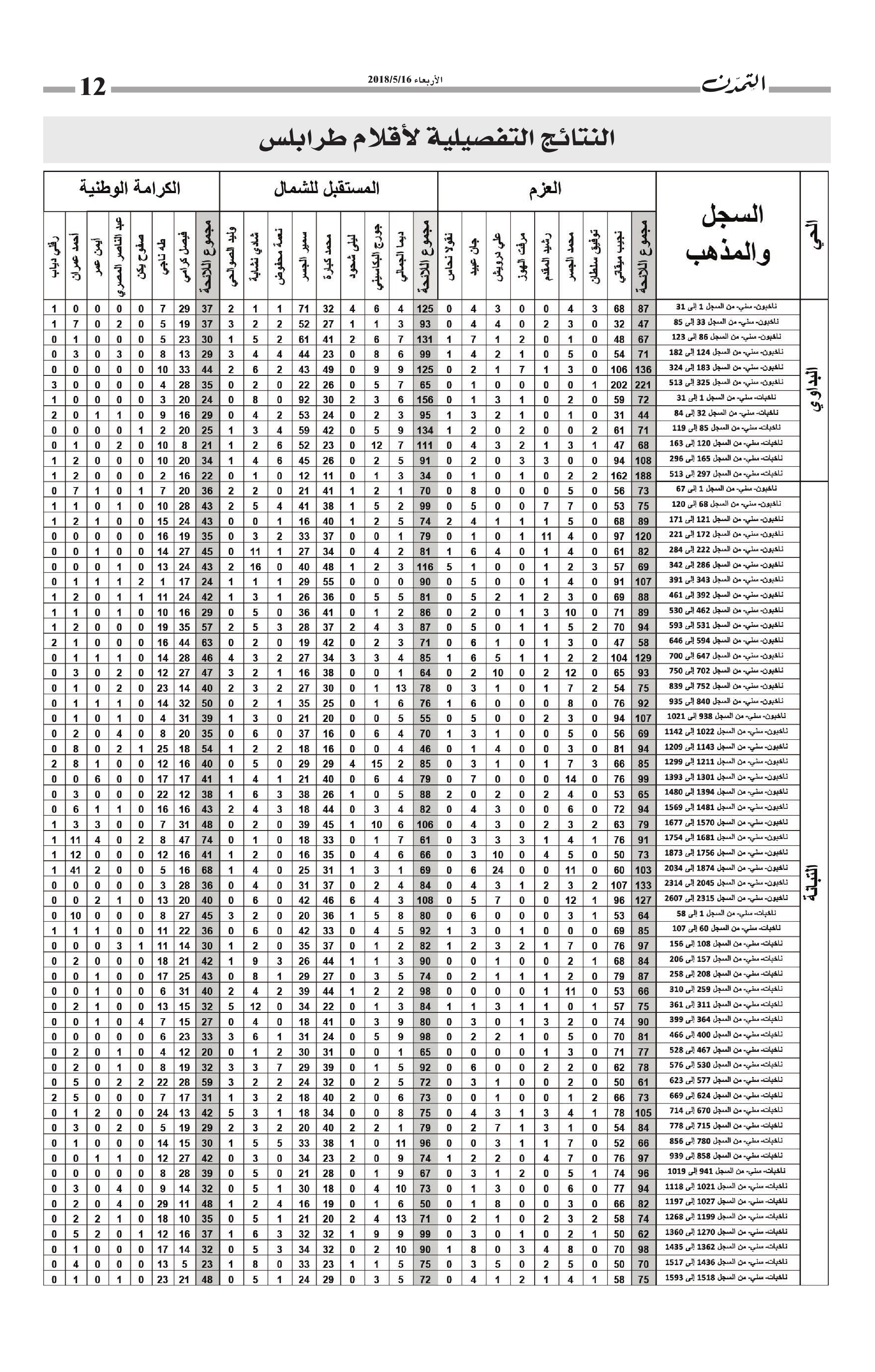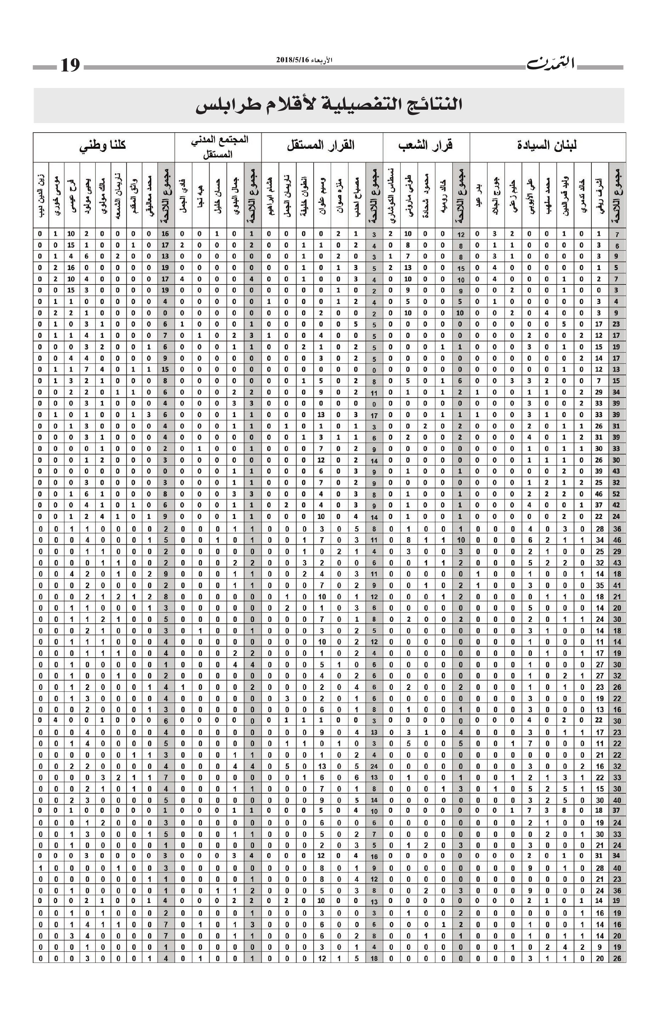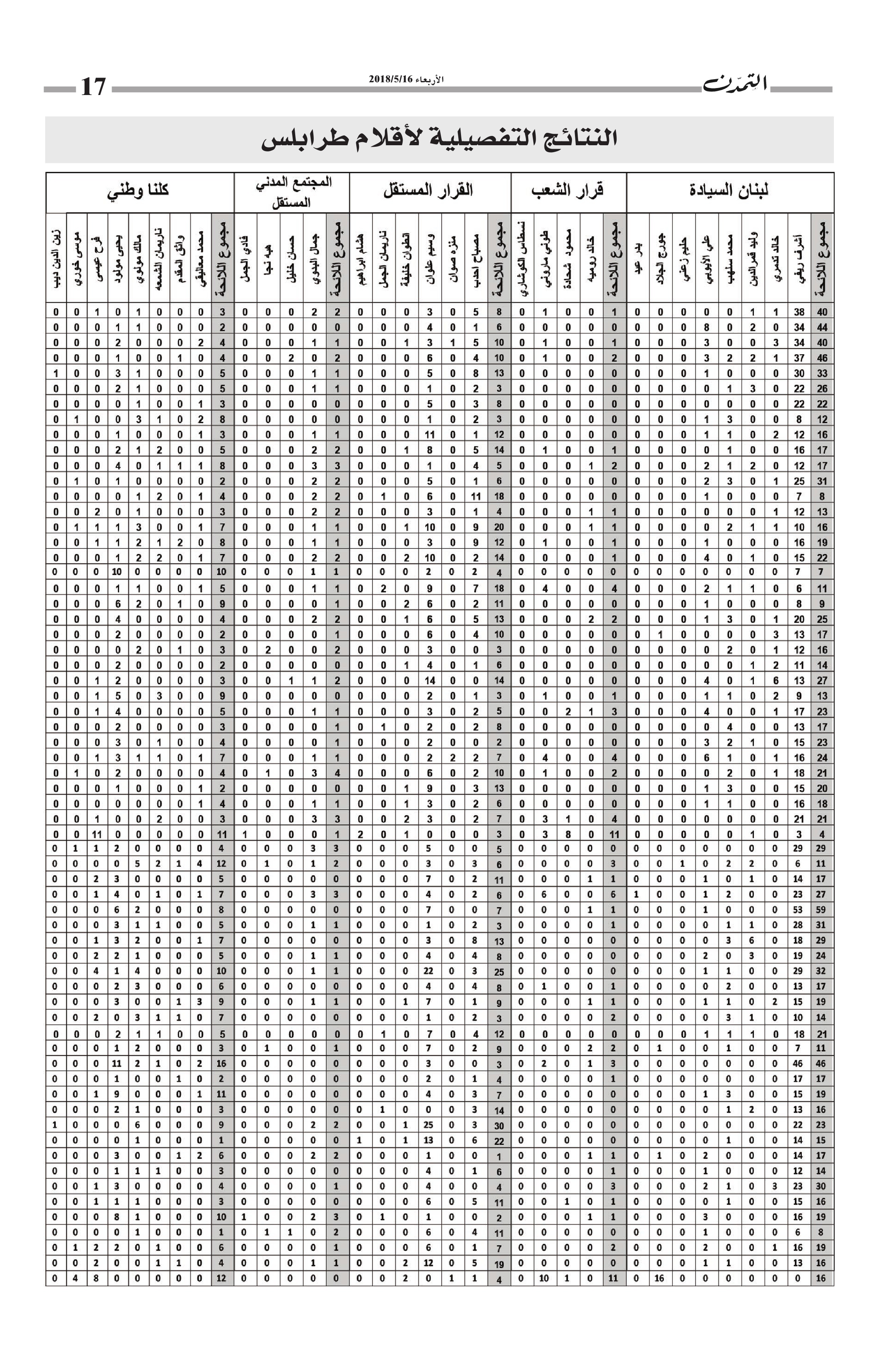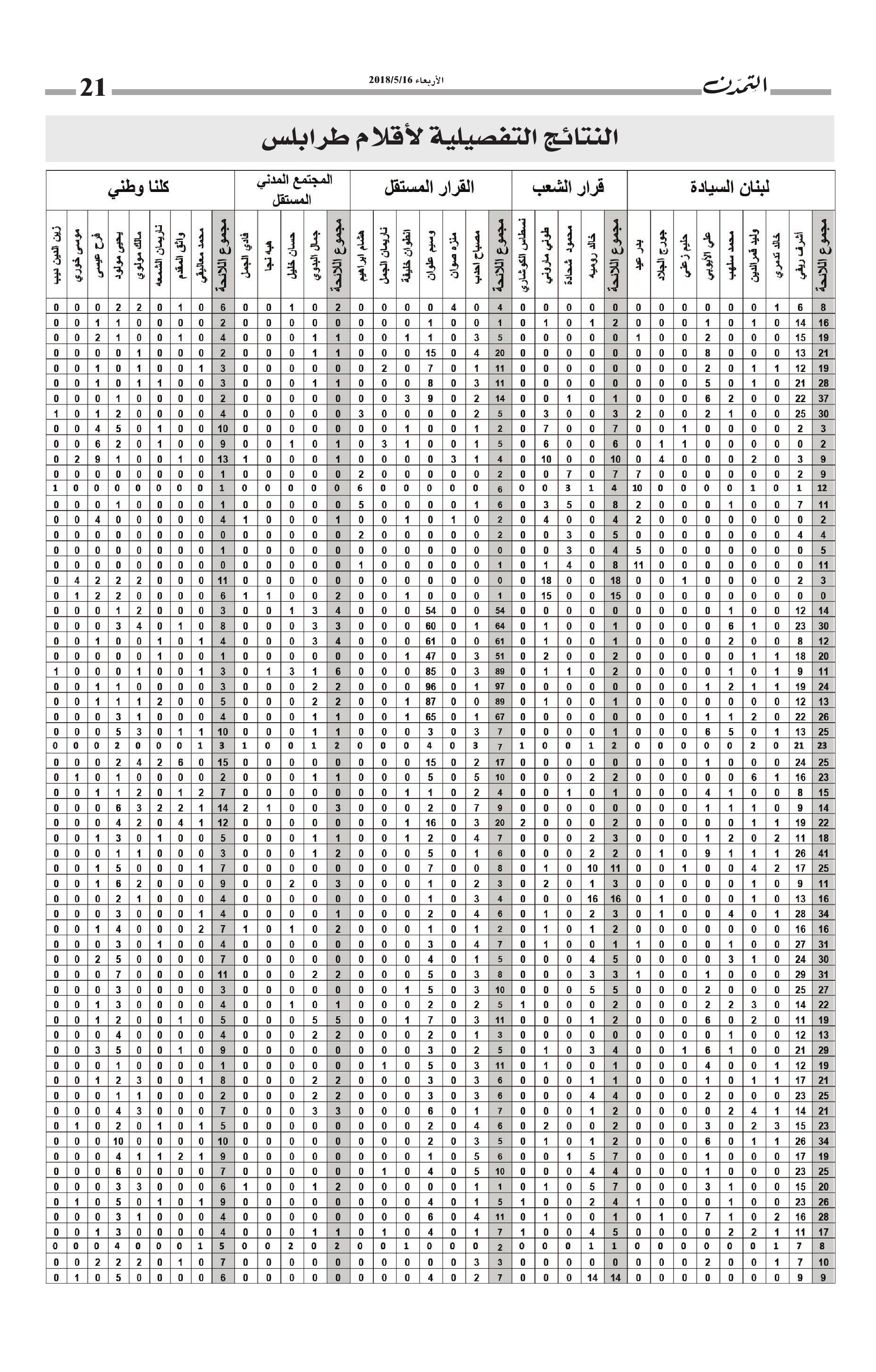 النتائج التفصيلية لأقلام طرابلس… مجموع الأصوات التي حاز عليها كل مرشح وكل لائحة في كل أقلام طرابلس الكاتب التمدن نشرت بتاريخ 19-05-2018 العدد : 1595 متابعة القراءة شارك المقالة