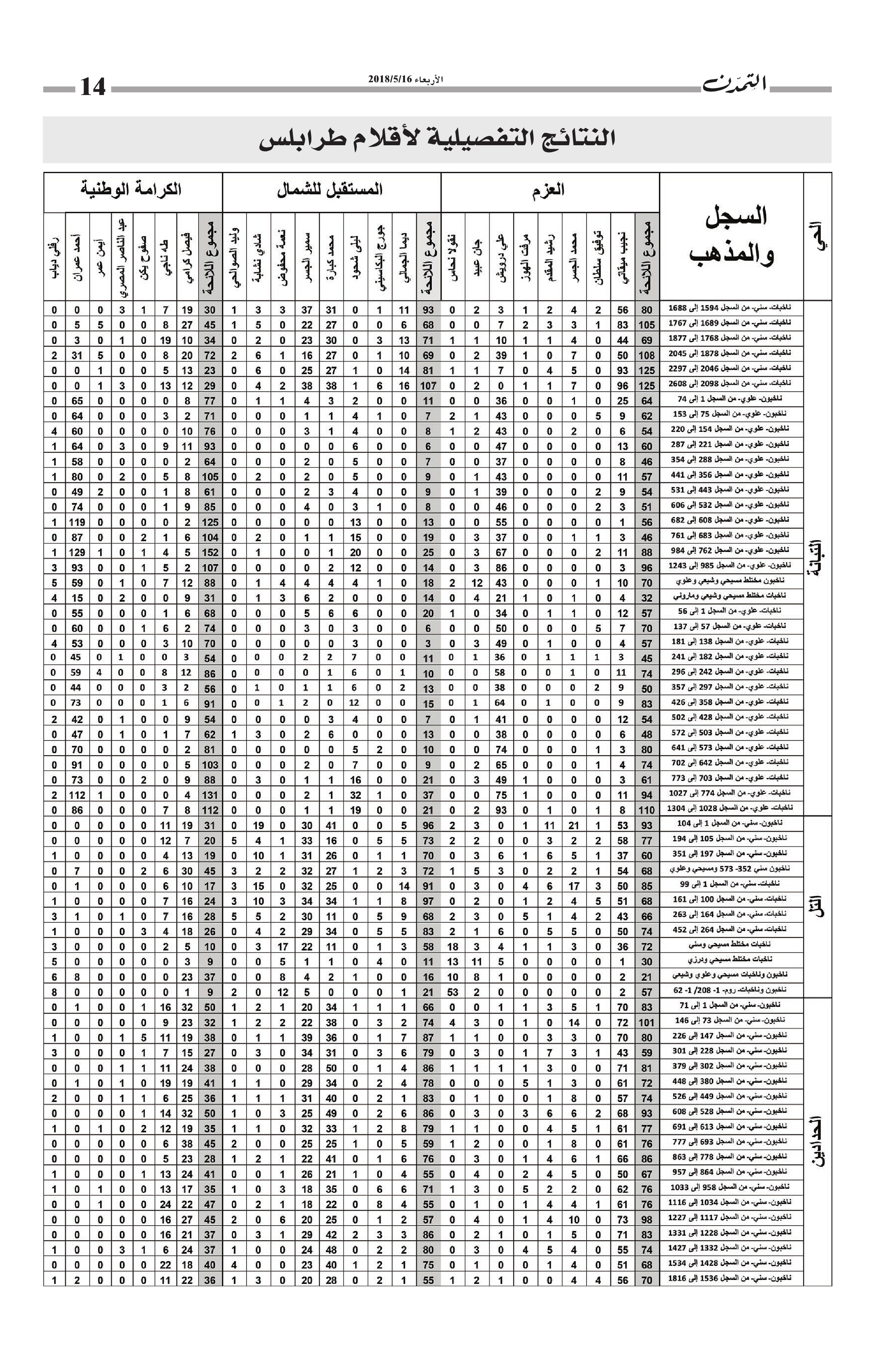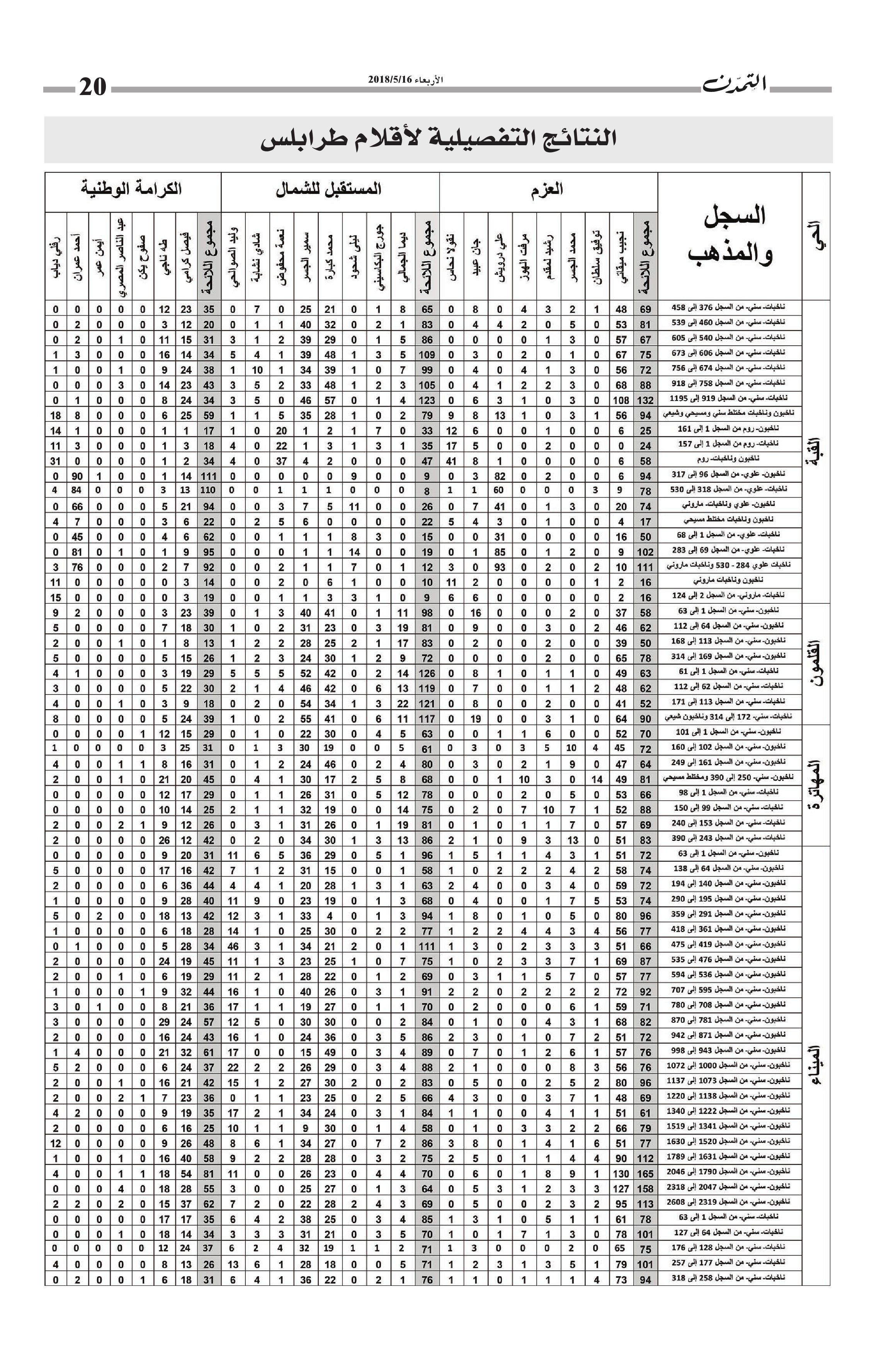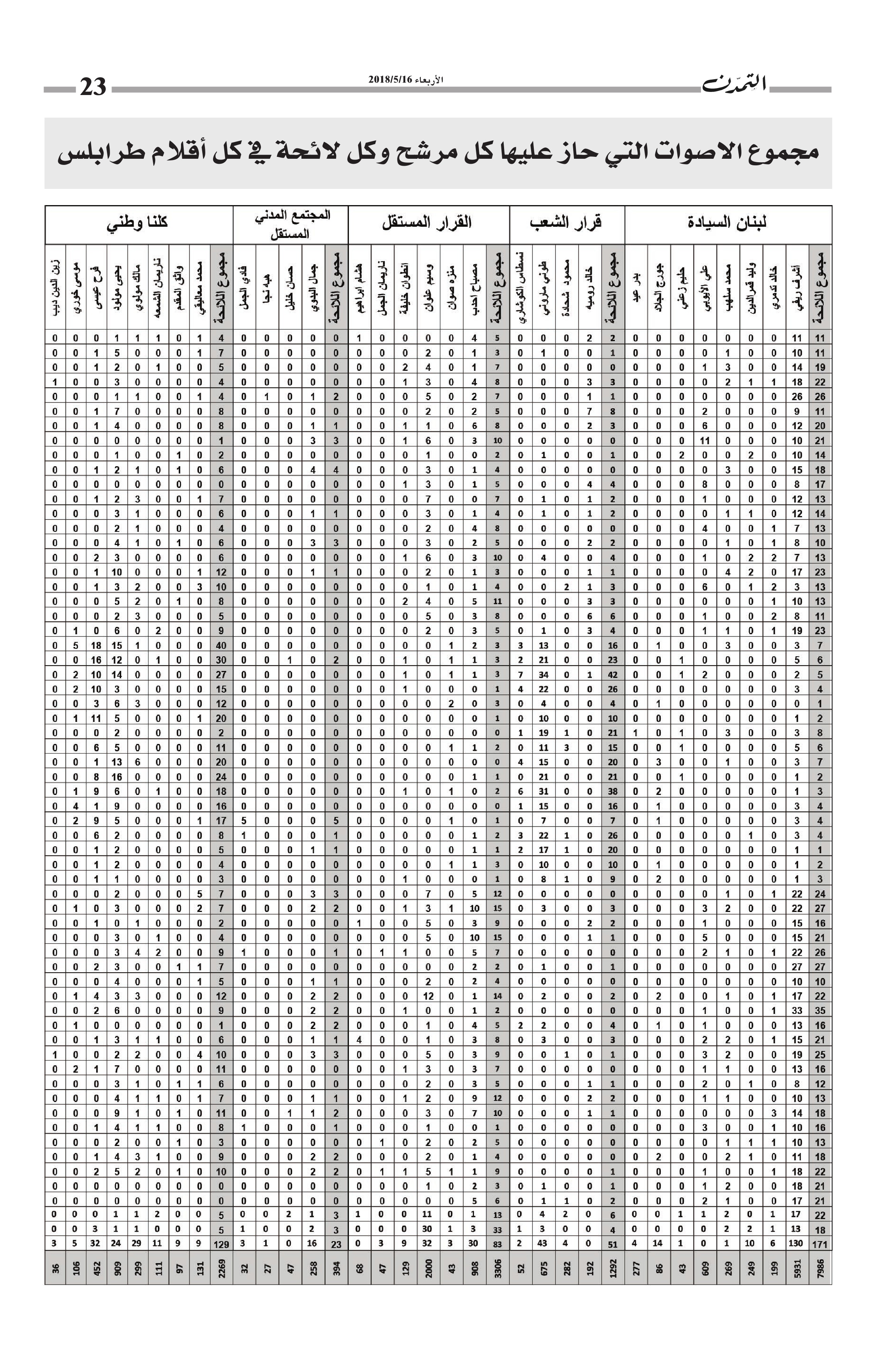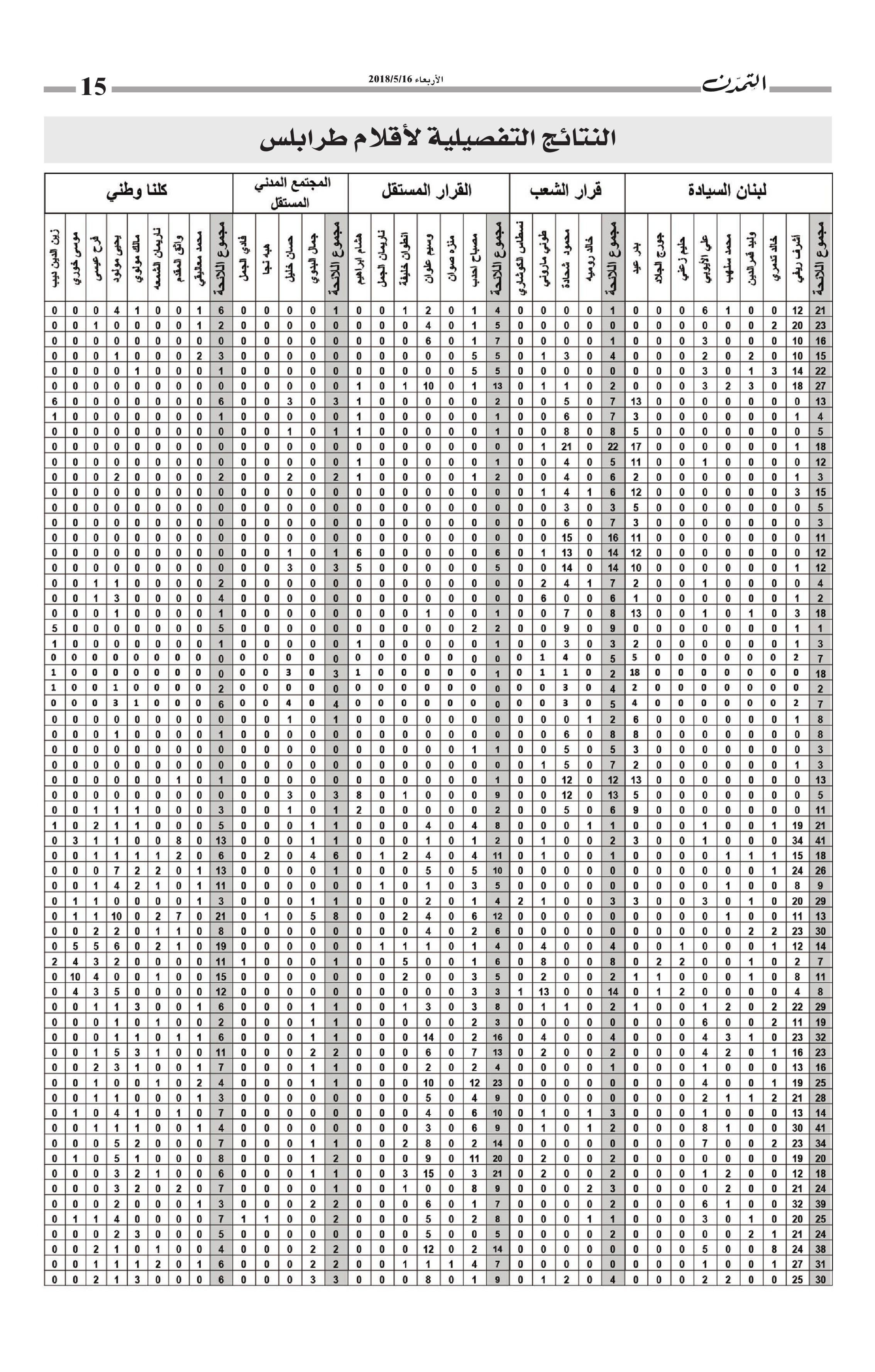 النتائج التفصيلية لأقلام طرابلس… مجموع الأصوات التي حاز عليها كل مرشح وكل لائحة في كل أقلام طرابلس الكاتب التمدن نشرت بتاريخ 19-05-2018 العدد : 1595 متابعة القراءة شارك المقالة