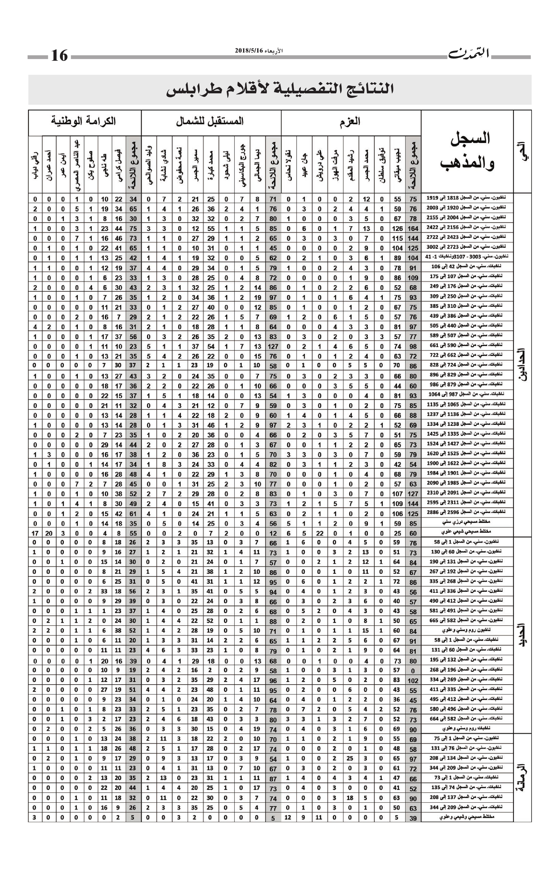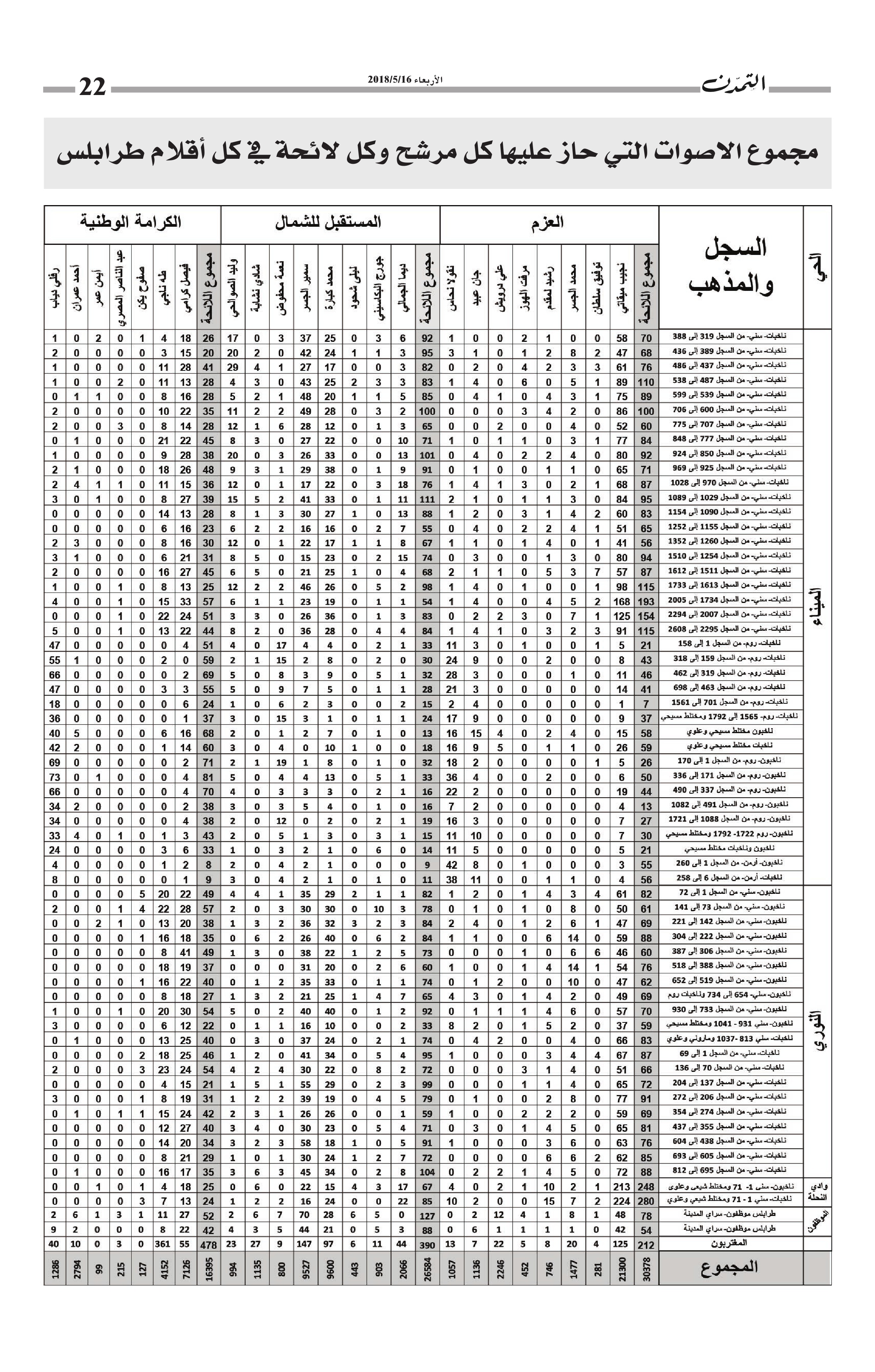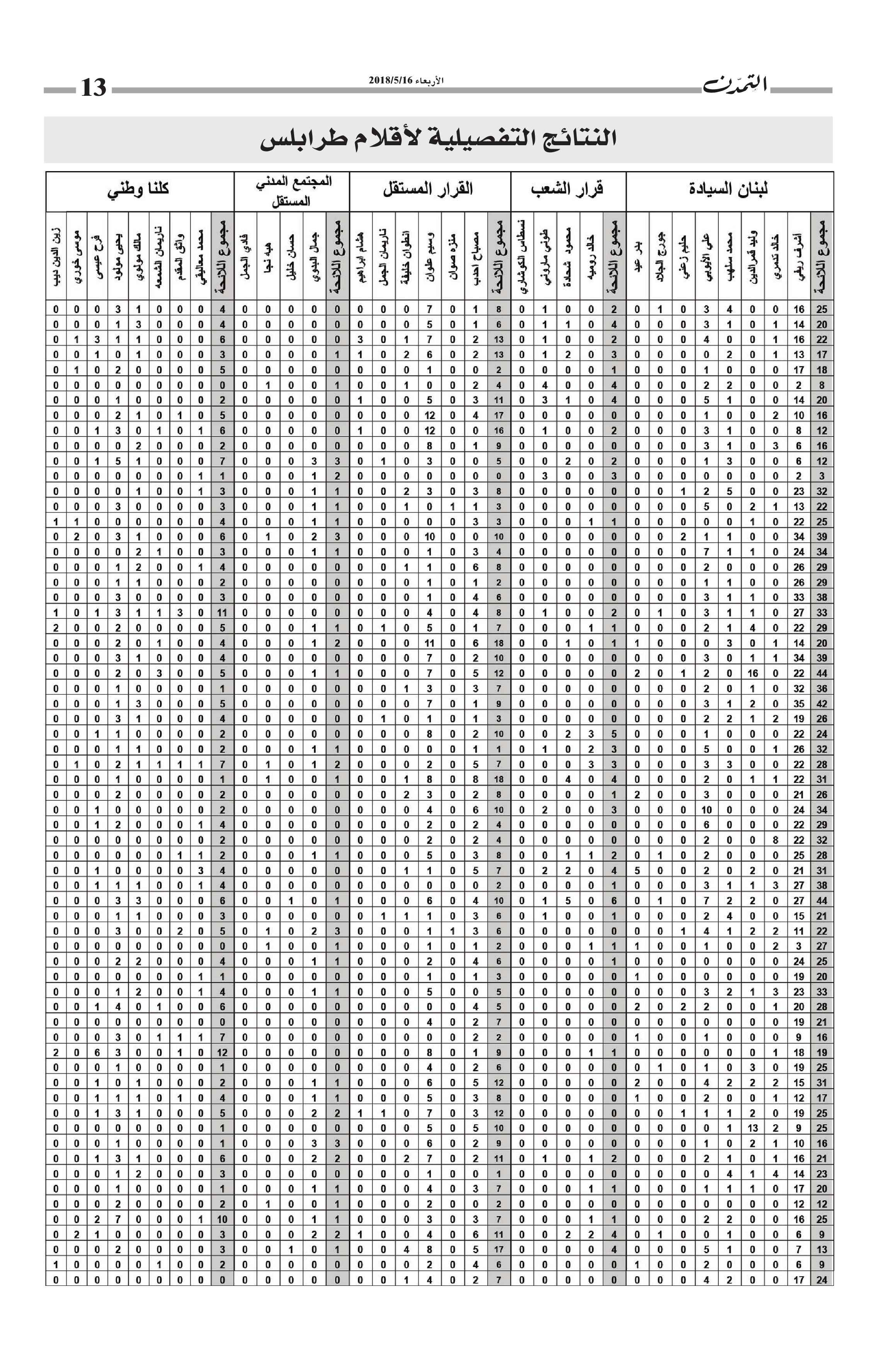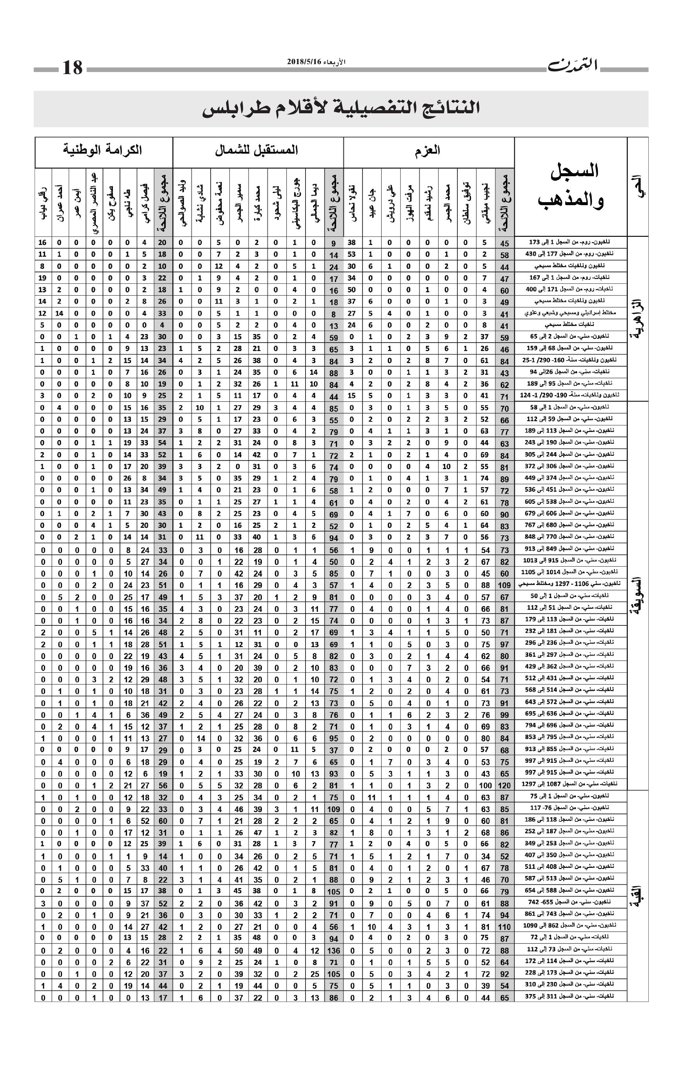 النتائج التفصيلية لأقلام طرابلس… مجموع الأصوات التي حاز عليها كل مرشح وكل لائحة في كل أقلام طرابلس الكاتب التمدن نشرت بتاريخ 19-05-2018 العدد : 1595 متابعة القراءة شارك المقالة