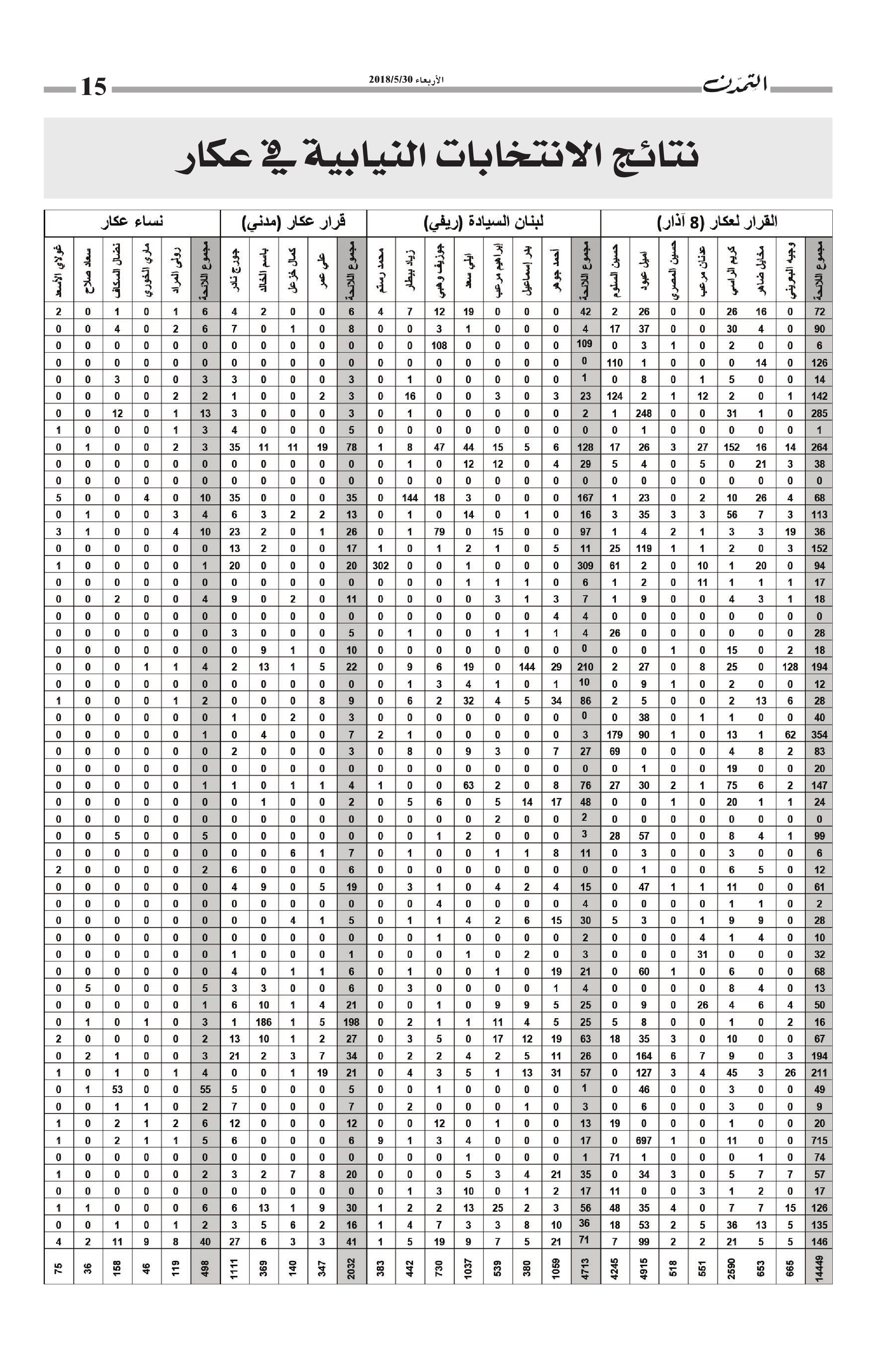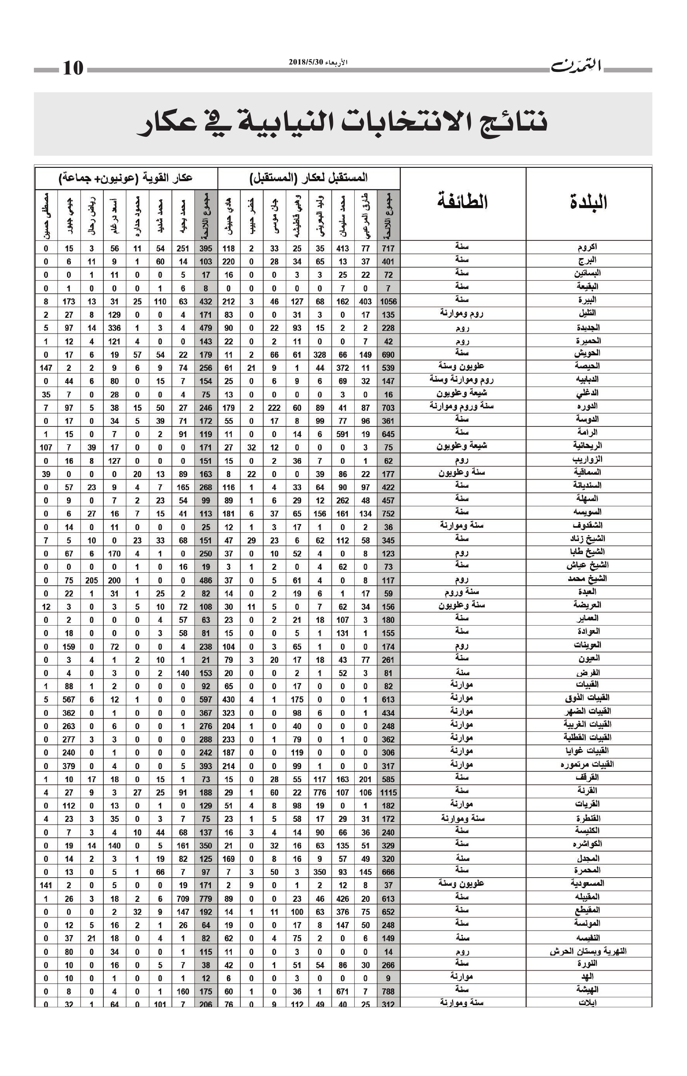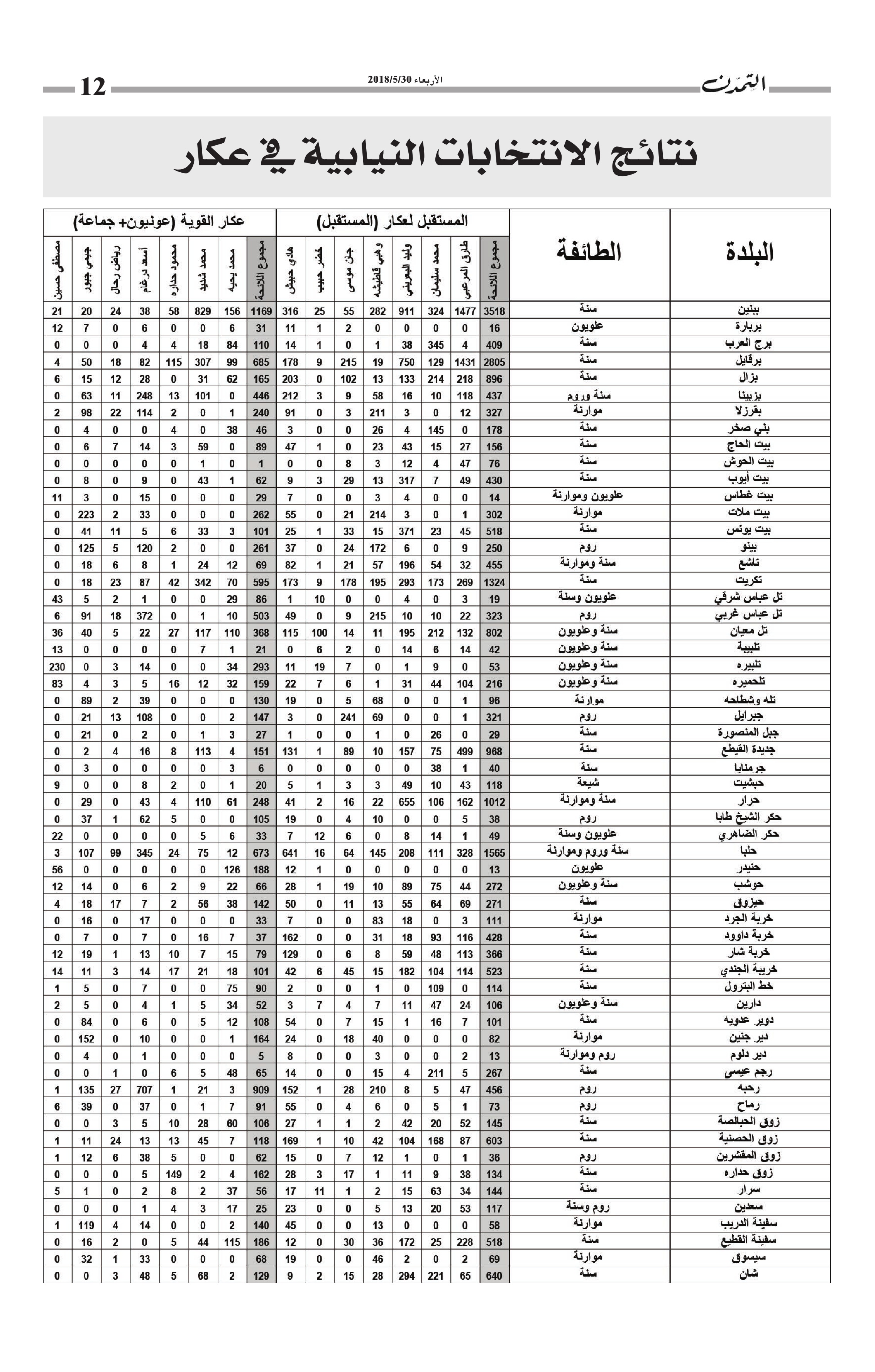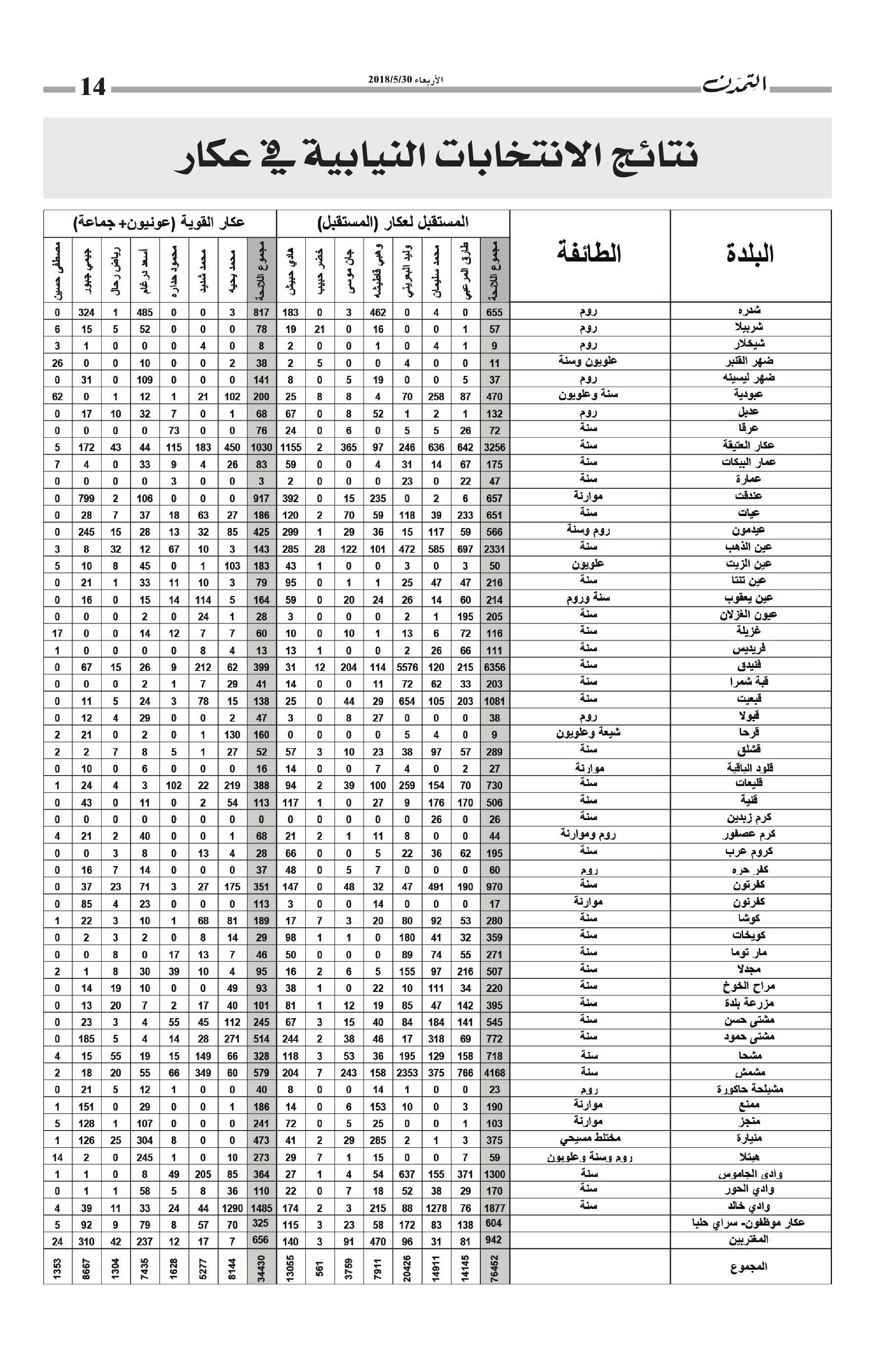 نتائج الانتخابات النيابية التفصيلية في عكار الكاتب التمدن نشرت بتاريخ 05-06-2018 العدد : 1597 متابعة القراءة شارك المقالة