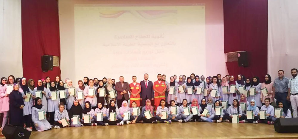 أقامت «ثانوية الإصلاح الإسلامية» بالتعاون مع «الجمعية الطبية الإسلامية» حفلاً لتوزيع الشهادات على طلاب الثانوية المشاركين في دورة الإسعافات الأولية التي أقيمت خلال العام الدراسي 2017-2018.