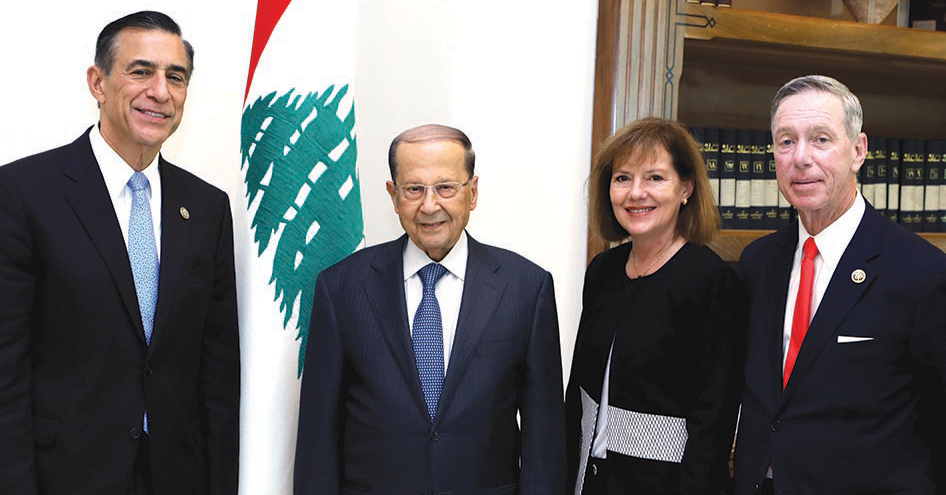 وفد من مجلس النواب الأميركي ضم النائبين دارين عيسى (لبناني الأصل) و«ستيفان لينش» مع معاونين لهما جالوا على الرؤساء وقائد الجيش «لعرض تطورات لبنان والمنطقة وتسليح الجيش»، ودعا الرئيس عون لتبيان رأيه فيها وما يطلبه من الإدارة الأميركية.