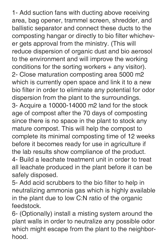 – وبعد إستشارتنا لأصحاب الإختصاص ومن كان لهم العمل المباشر في هذا المعمل نعرض لكم الحقائق وما هي الموجبات المفترض تأمينها ليقوم معمل الفرز بدوره العلمي والتقني لمعالجة مشكلة النفايات في مدن الفيحاء: