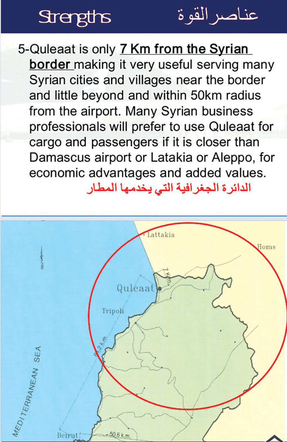 – تشير الدراسات إلى أن ربع سكان لبنان يعيشون في المناطق المحاذية والقريبة من المطار، مما يشكل لهم بديلاً عملياً عن مطار بيروت الدولي.