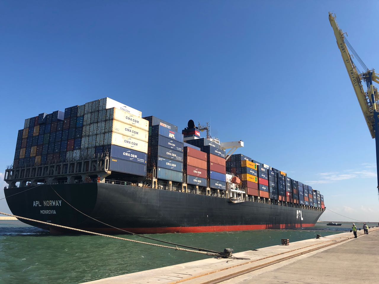 سفينة الحاويات العملاقة Apl England التابعة لشركة Cmacgm، رست مؤخراً على رصيف الحاويات في مرفأ طرابلس الدولي، وهي محملة ب 6000 حاوية لتفريغ حمولتها في مرفأ طرابلس والمرافىء المجاورة.