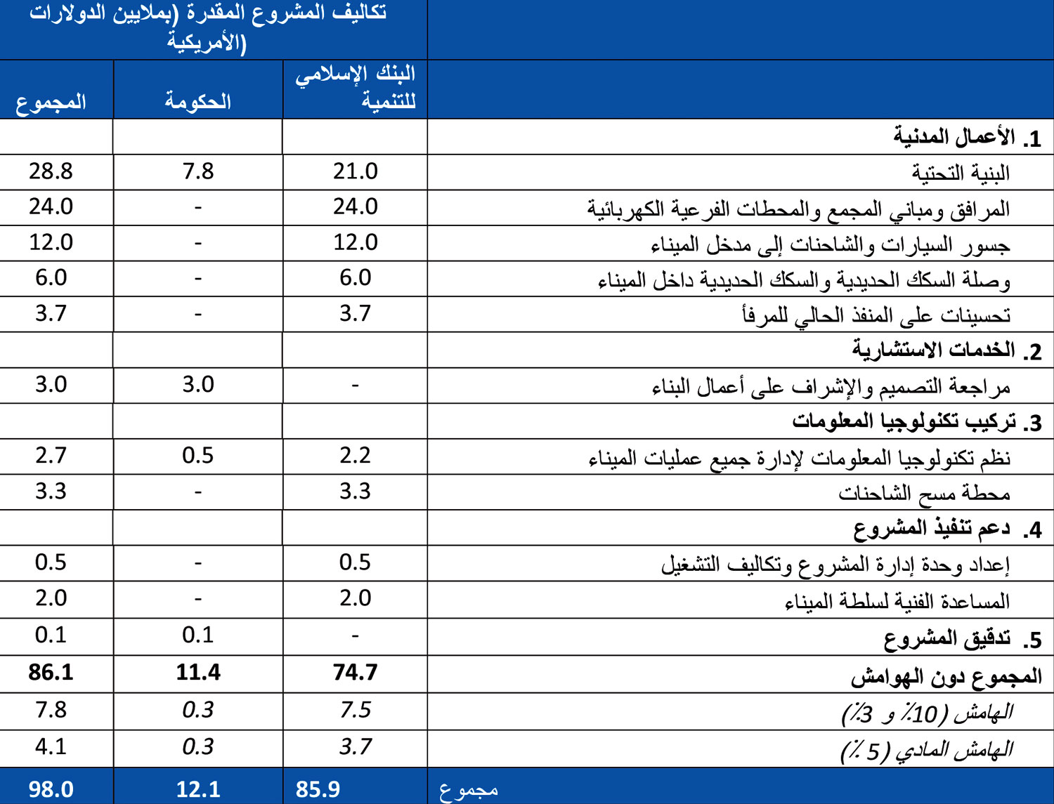 5- تجديد وتحديث أصول وتجهيزات ومعدات المرفأ.