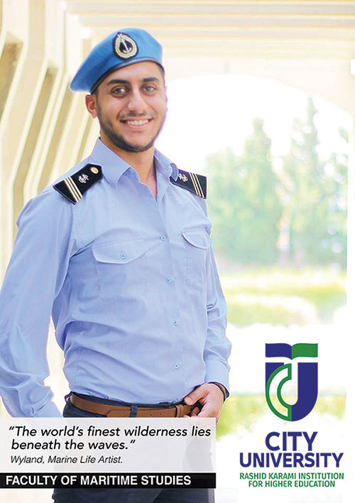 وبموجب إتفاق مع الأكاديمية العربية للعلوم والتكنولوجيا والنقل البحري التابعة لجامعة الدول العربية يتم في جامعة المدينة في طرابلس تدريس الطلاب خلال سنتين نصف مواد برنامج اختصاص القبطان البحري أو اختصاص الهندسة البحرية. ومن ثم يتابع الطالب المواد المتبقية في الإسكندرية خلال سنتين متتاليتين. وفي أي من هذين الاختصاصين يحصل الطالب على شهادتين إحداها ضابط بحري وأخرى بكالوريوس تكنولوجيا.