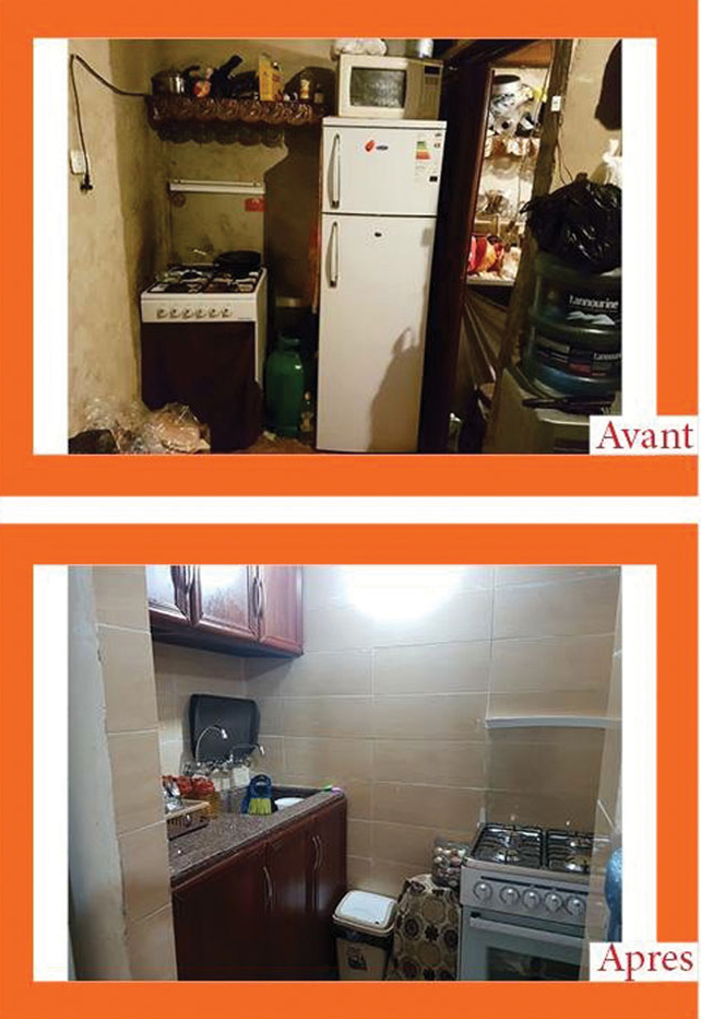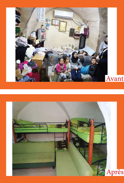 كما لجأت بعض الشابات إلى صناعات يدوية خفيفة جنين منها مبالغ إضافية ما كانت في الحسبان، ساعدت في تنمية قدراتهن على اقناع المجتمع من حولهن في تسويق المشروع. كان عامل الوقت ضاغطاً بالنسبة لنا، فاضطررت للتواصل مع جميع الفرقاء وترتيب حسن تواصلهن بعضهن مع بعض، وفجأة وجدت نفسي على احتكاك مباشر بالورشات خصوصاً مع السكان الذين خافوا رمي أغراضهم المهترئة، فاستوجب ذلك مني دعمهم النفسي الدائم وتأكيدي لهم، عبر زياراتي اليومية واتصالاتي المتكررة، أننا فعلاً سنقوم بشراء البدائل المناسبة الجديدة تعويضاً عن حاجاتهم القديمة. فتم فرش البيوت الخمسة «من الباب حتى المحراب».