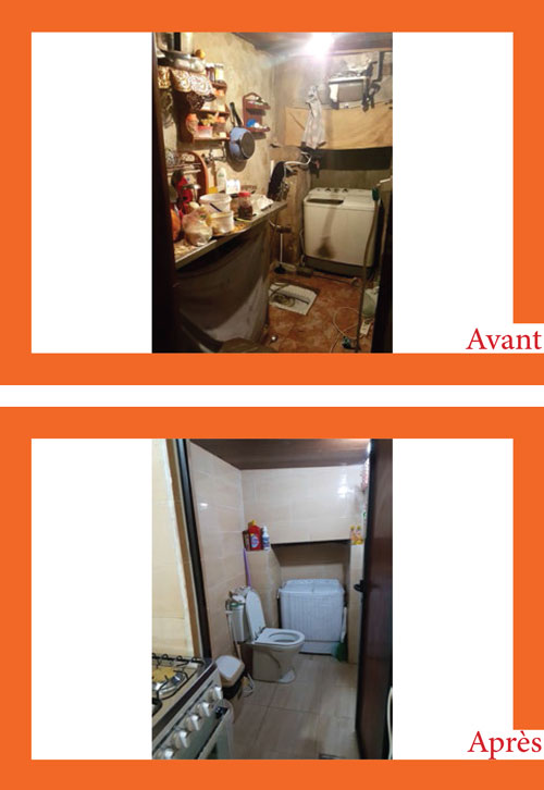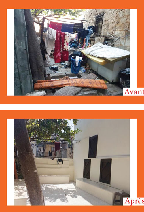 قبل وبعد عمليات الترميم والتأهيل وتأثيث البيوت