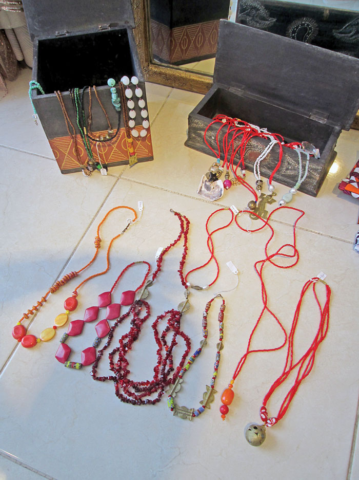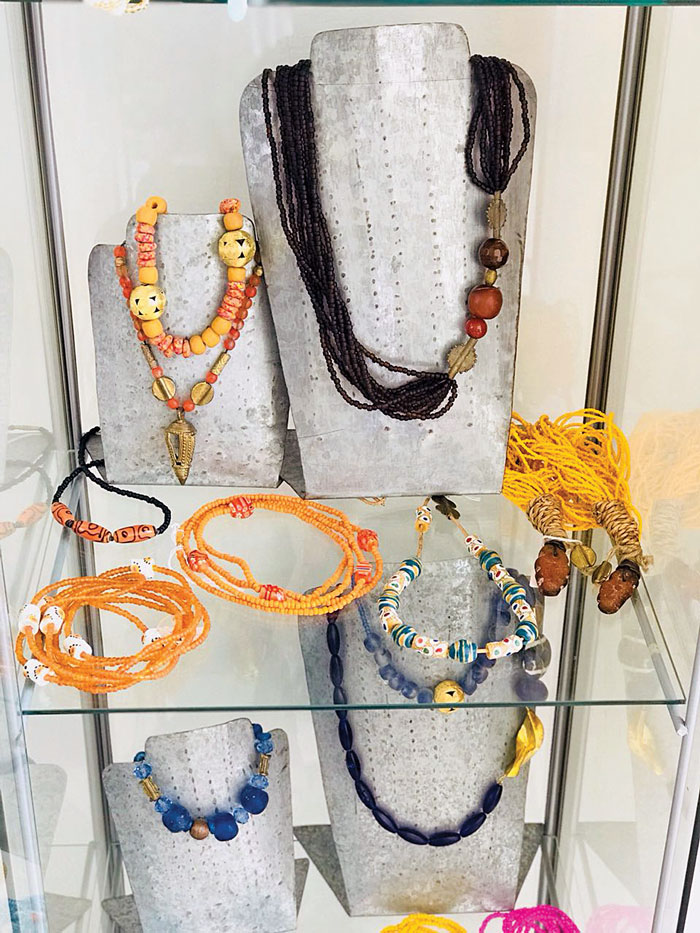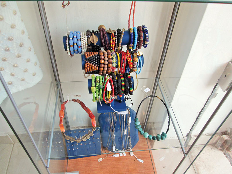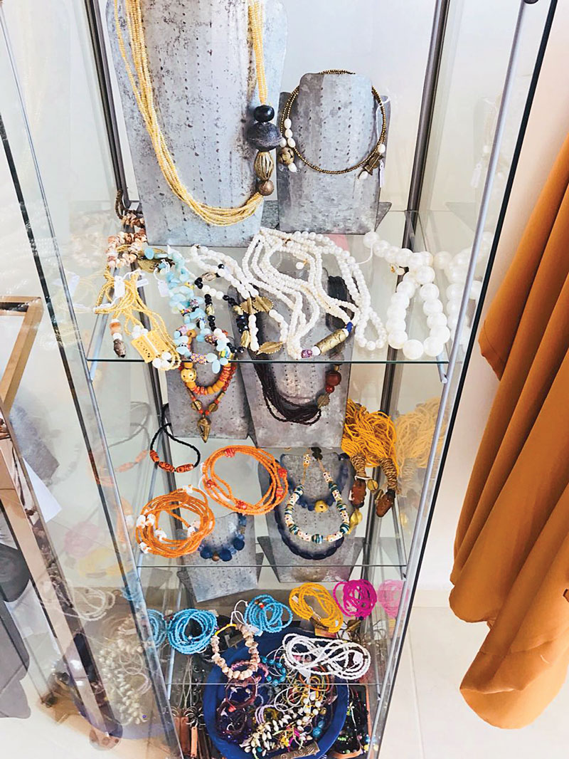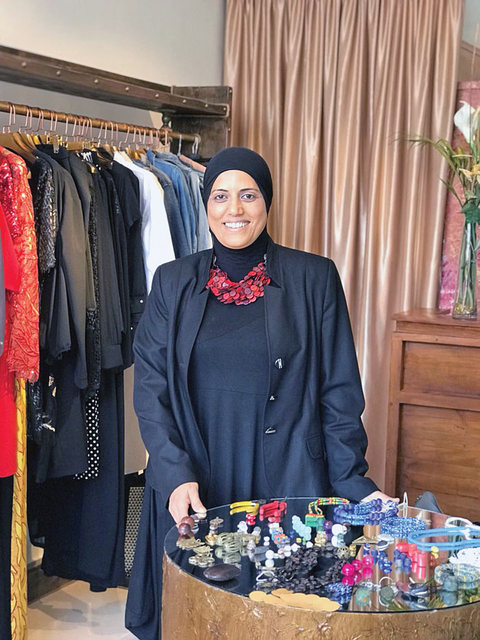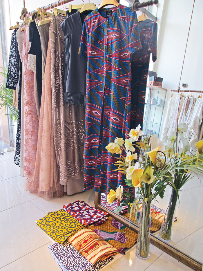 قبل أن نفتح هذا المحل اليوم، كنت وابنتي «كندا» قد بدأنا العمل من المنزل منذ ثلاث سنوات خلت، فابنتي درست الأزياء وهي متأثرة بالذوق الأفريقي، وأنا أرفدها بالاكسسوارات المناسبة.