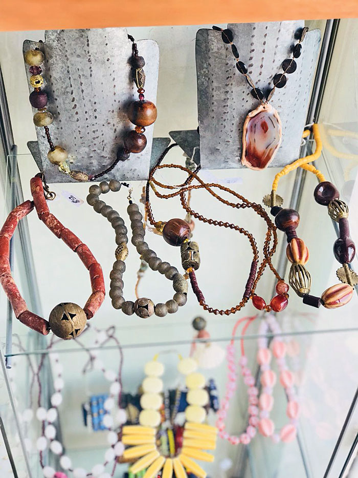 «ارتاح جداً في العمل على العقود والأطواق، رغم أنني أصنع الأساور والخواتم والأكمار. فلكل حجر اسم وشخصية تنعكس على من تتزين بها، مثل أحجار الجاد، المرجان، العنبر، الرخام، عين النهر، الإينوكس، حجر الزجاج الملون، قشر جوز الهند، صدف البحر، والكثير…