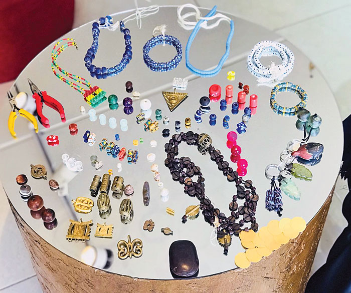 حين تقصد مشغل السيدة ديالا أديب الحرفي، تدخل في دائرة الطاقة الايجابية لتلك المرأة، التي تحمل في ثقافتها وانطباعاتها، روحاً اندمجت بكل عفوية وتلقائية مع الألوان الأفريقية في الأقمشة المستوردة ومشاعر الفضول والرغبة في التعلم عن تلك الأحجار الملونة، المثقوبة والملونة وعن دلالاتها عبر الثقافات العالمية والشعوب التي تتزين بها لكافة المناسبات حسب الاختيار والمزاج والمناسبة.