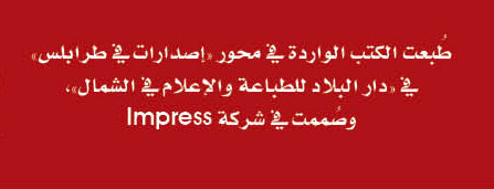 في ما يلي تنشر «التمدن» نبذات عن بعض الكتب التي تمّت طباعتها في «دار البلاد للطباعة والإعلام في الشمال»، وهذه الكتب تمّ تصميمها وإخراجها في شركة Impress.