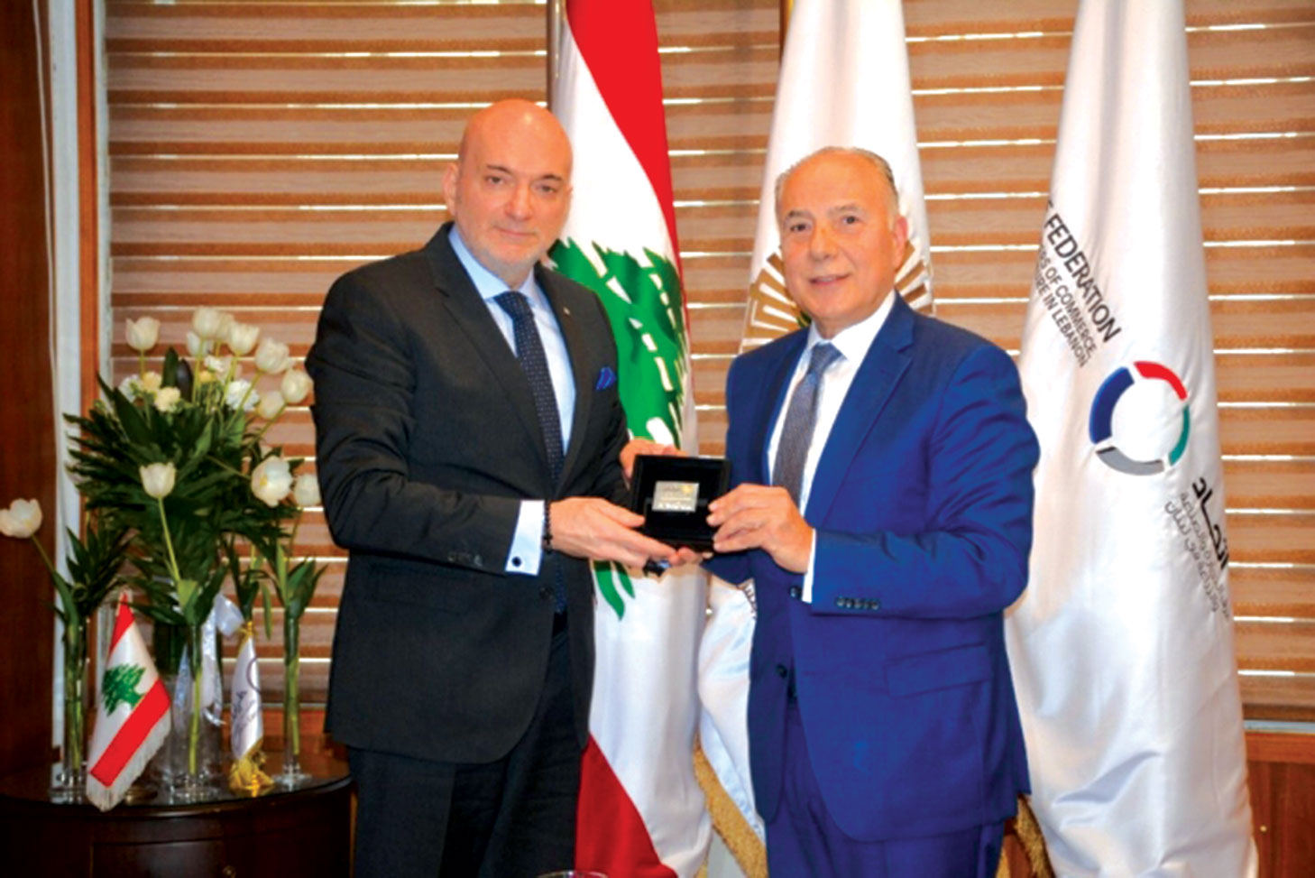 رئيس «غرفة طرابلس والشمال»، توفيق دبوسي خلال إستقباله الوزير الأسبق للإقتصاد والتجارة آلان حكيم قال: