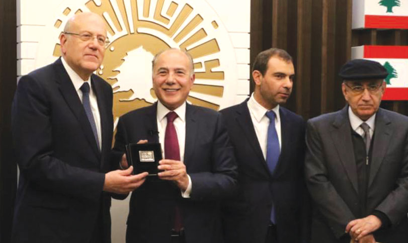 ثم قدم الرئيس دبوسي للرئيس ميقاتي هدية رمزية تمثل مبادرة نحو «طرابلس عاصمة لبنان الإقتصادية»».