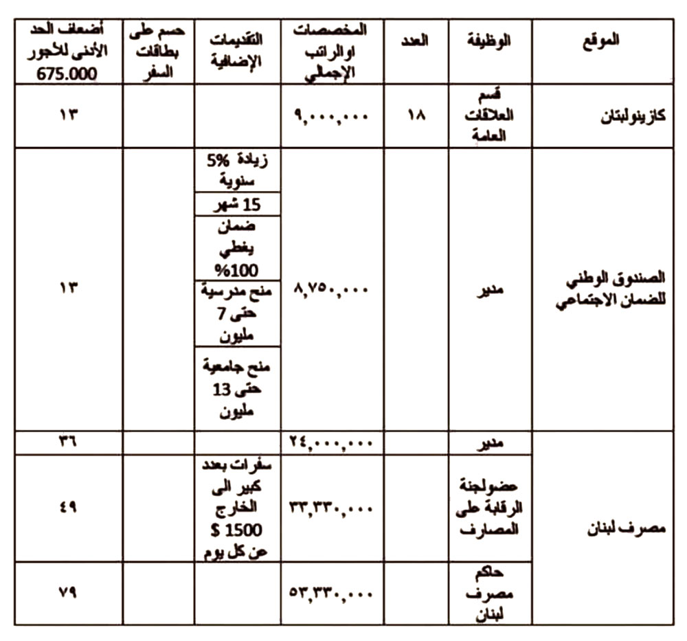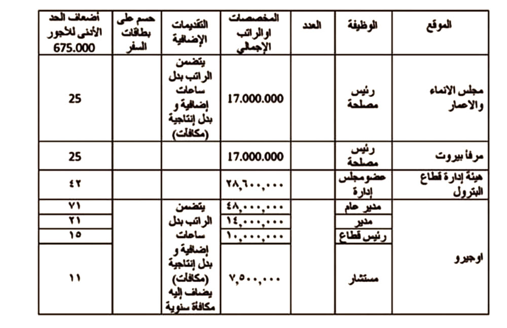 رواتب موظفين في «اوجيرو» في لبنان هي كالتالي: