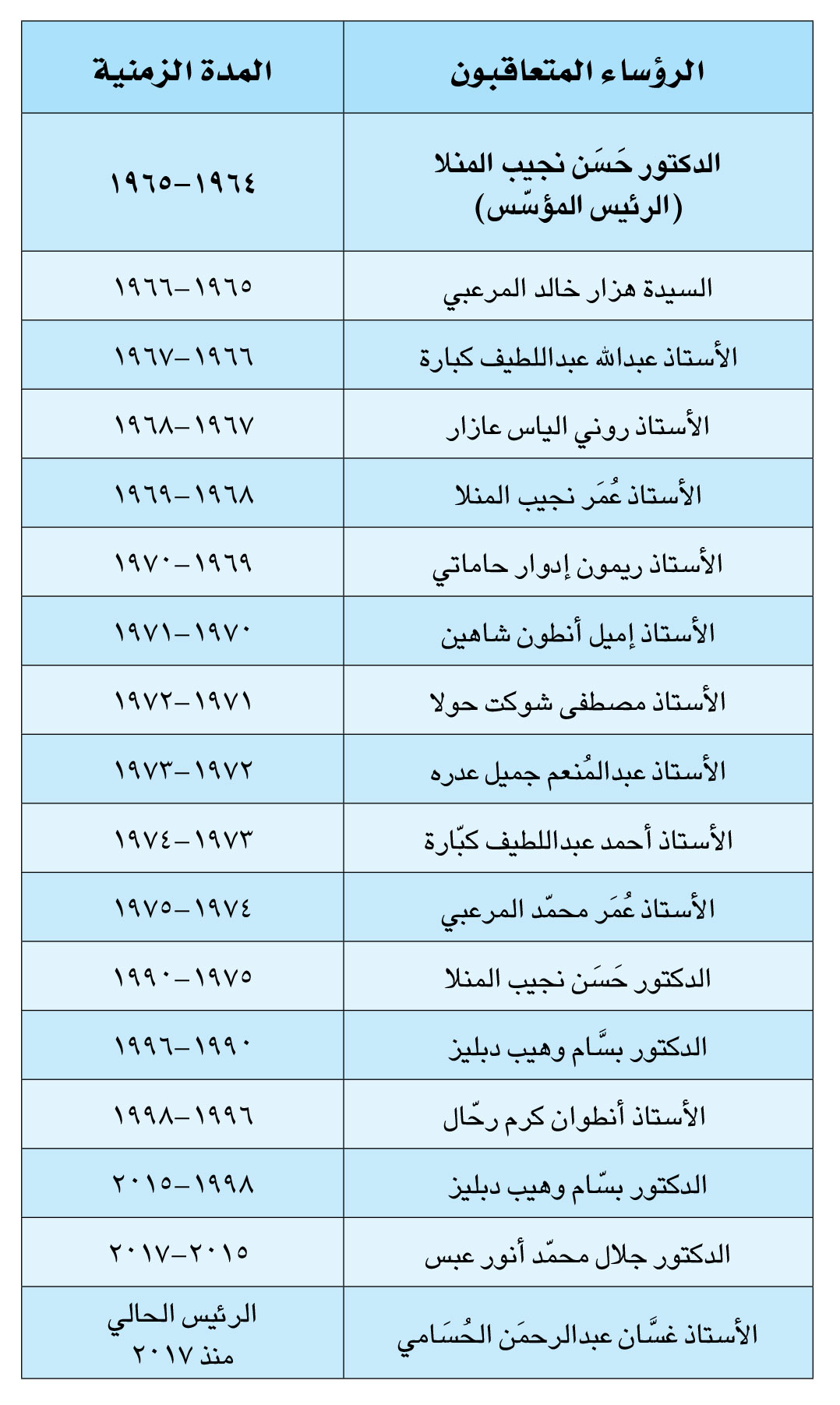 «كلفني وشرّفني الأخوة الزملاء الأحبّاء عقب نتيجة الإنتخابات التي جرت بتاريخ يوم الأحد الواقع فيه 30 نيسان 2017، أن أكون رئيساً لرابطة الجامعيّين في الشمال التي أجلها ببالغ التقدير. معتزاً متعاوناً مع هيئة إداريّة جديدة ضمّت كل من المهندس الدكتور جلال عبَس نائب الرئيس، والمحاميّة الأستاذة رنا دبليز البرازي أمينة السرّ، الأستاذ أنطوان رحّال أمين الصندوق، والأستاذة عايدة صوفي ذوق محاسبة، مع حرصي على تسميّة أخي الدكتور بسّام دبليز رئيساً فخريّاً، منذ أن كنتُ نائباً للرئيس الدكتور جلال عبس في الهيئة الإداريّة السابقة (2015-2017)، وذلك تثميناً وتقديراً لعطاءاته، وبخاصة في تكبّده أعباء الإستمراريّة والمحافظة على الرابطة، في أدق الظروف وأصعبها التي ألمّت بالوطن منذ اغتيال الرئيس الحريري 2005، وما تلاها من عدوان إسرائيليّ في تمّوز 2006، وصولاً الى الإضطرابات الأمنيّة التي ألمّت بطرابلس منذ 2007 “فتح الإسلام” ومعارك جبل محسن – التبانة 2008، حتى تطبيق الخطة الأمنيّة بتاريخ الأول من نيسان 2014.