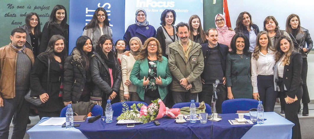 و في اللقاء الخامس استضافت الجامعة المحامية رشا سنكري عضو مجلس بلدية طرابلس ونائب رئيس «المنتدى» في طرابلس، وقد شاركت الطلاب «خبرة حياة غنية بالأمل والإصرار مهما كانت الصعوبات التي تواجه الفرد وتعيق تحقيق أحلامه، فالمثابرة والنضال هما الركيزتان للمواصلة والإيمان بمجتمع أمتن ومستقبل زاهر».