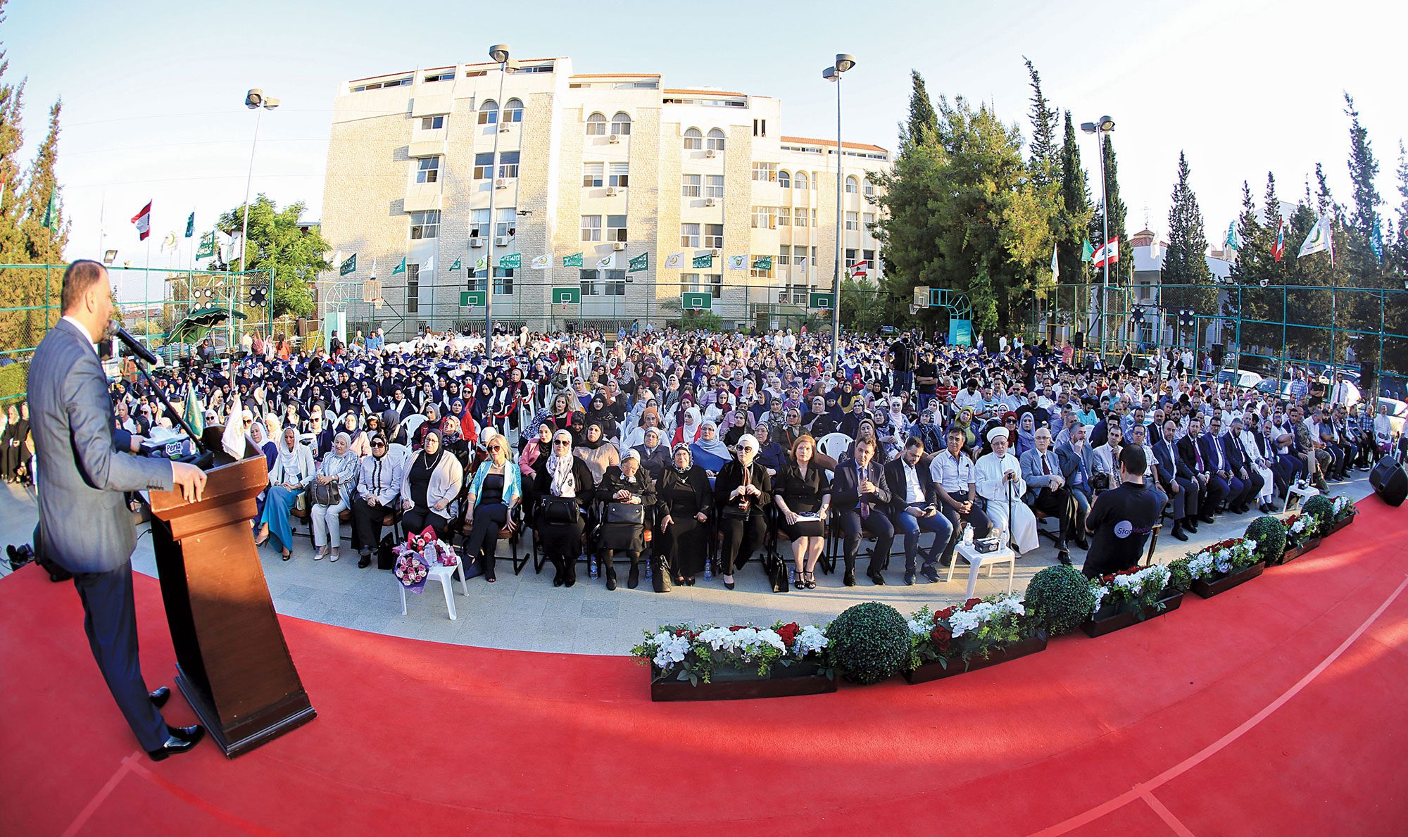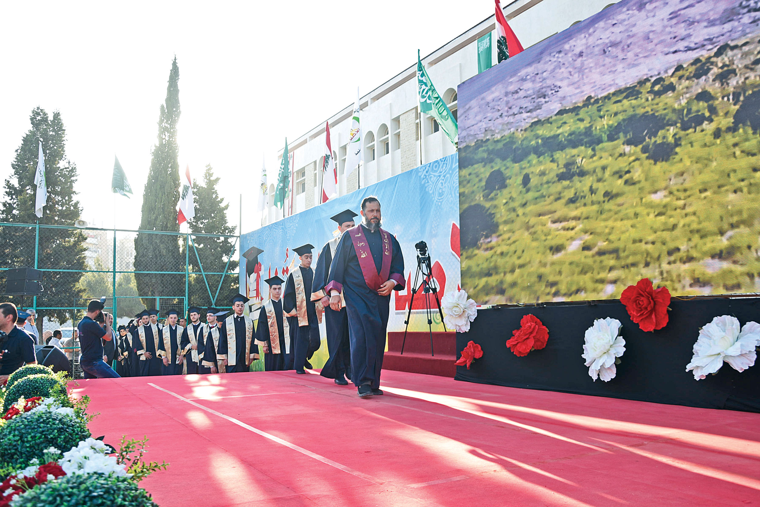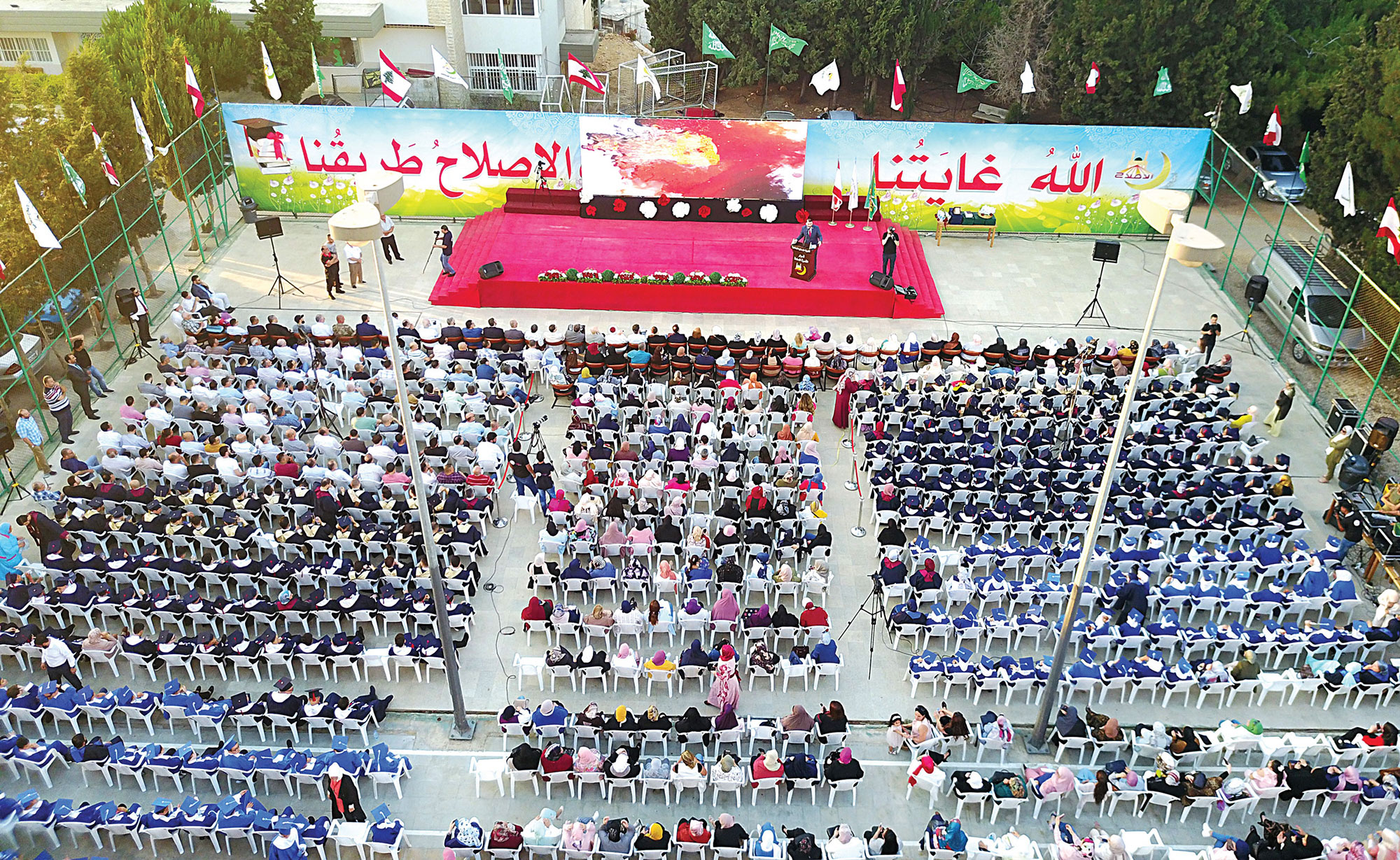 استهل الاحتفال بتلاوة عطرة من القرآن الكريم ألقاها الأستاذ علاء مرعي وبعد تقديم من عريف الاحتفال الدكتور عماد غنوم، دخلت مواكب الخريجين والخريجات من مختلف المراحل الدراسية. وبعد موسيقى النشيد الوطني ونشيد الإصلاح جرى عرض فقرة إنشادية بعنوان «سأظل بالإصلاح مرفوع الجبين» قدمها كوكبة من مدرسي الثانوية.