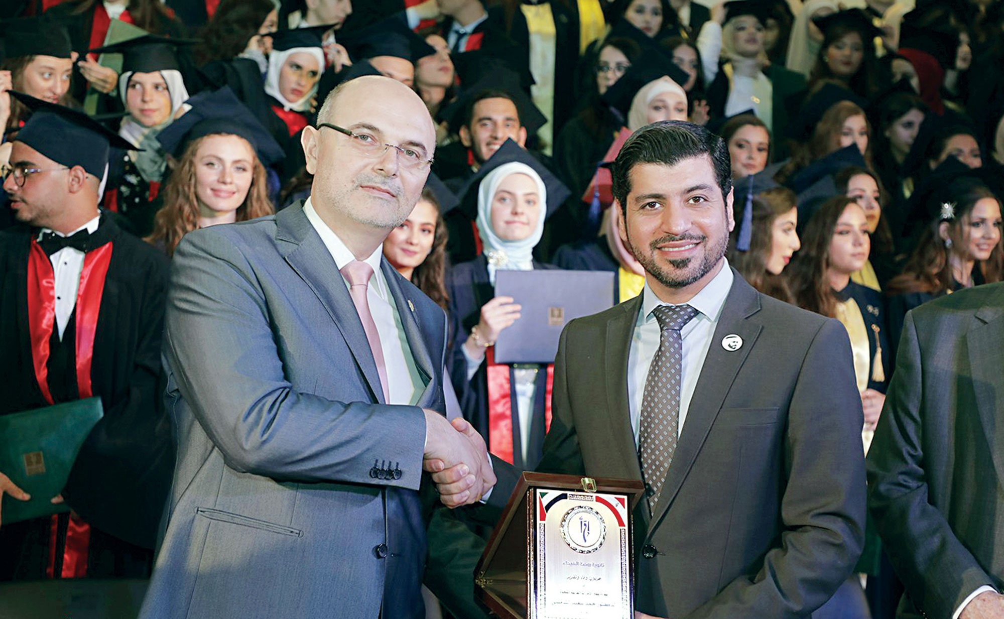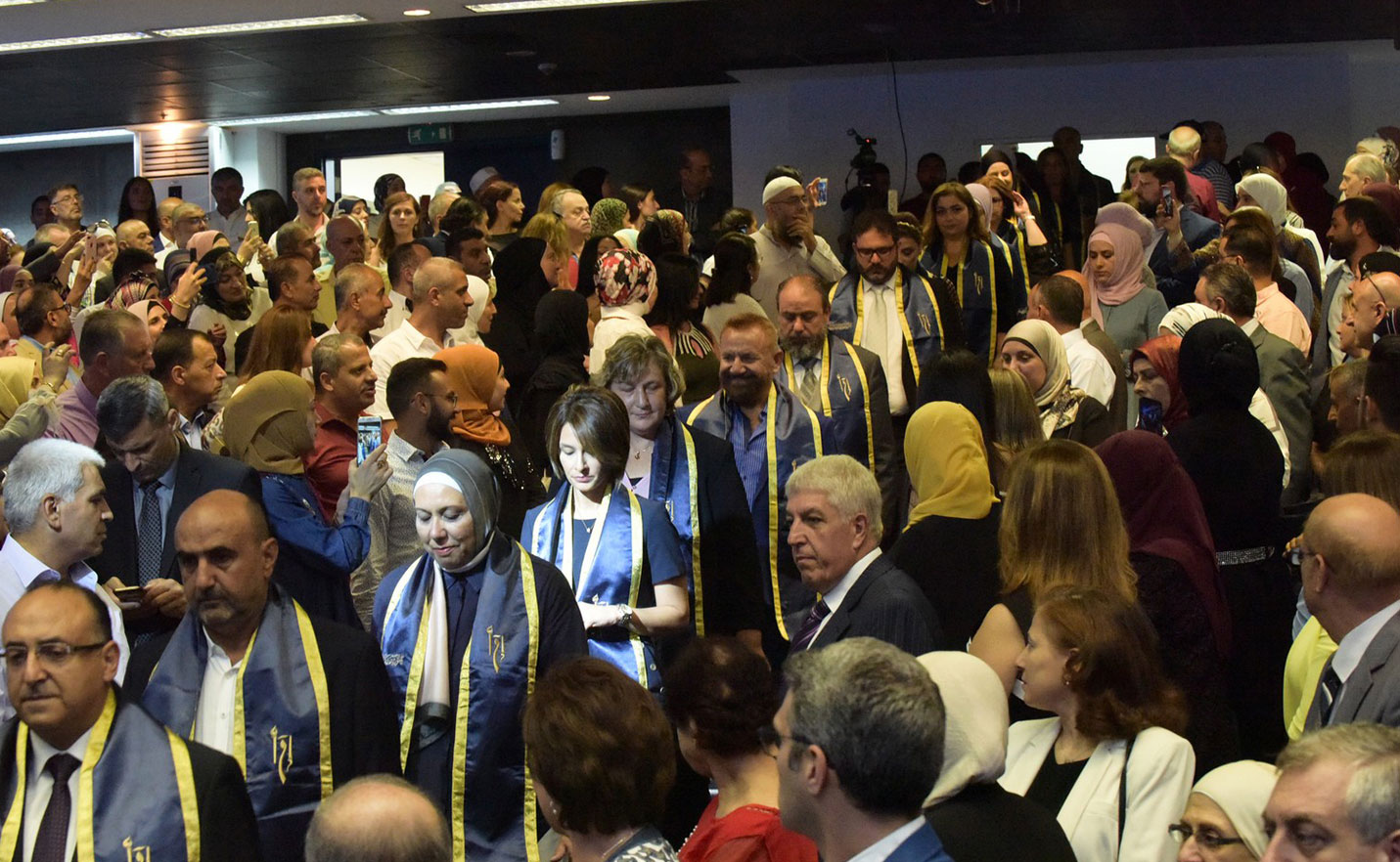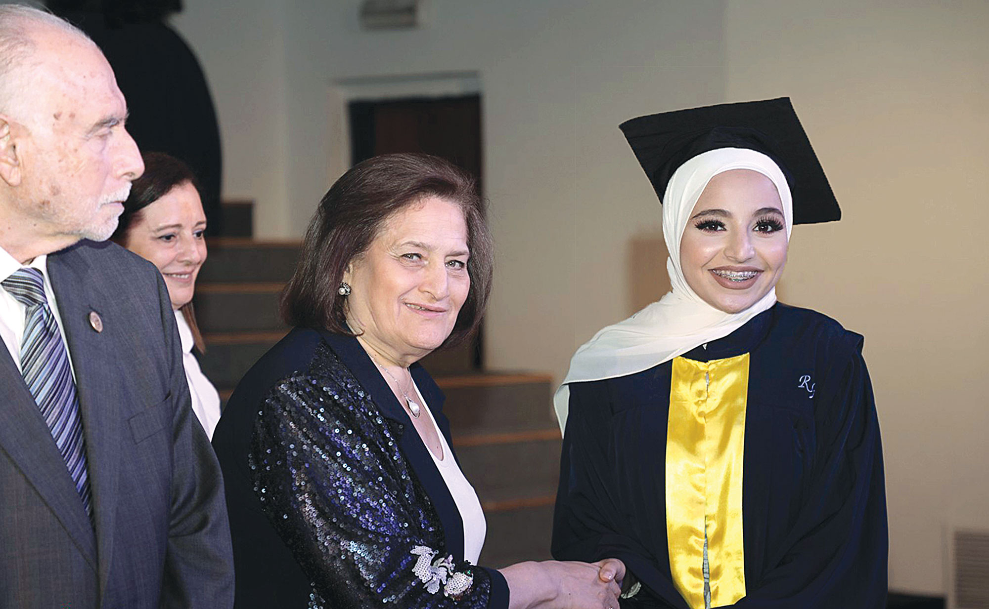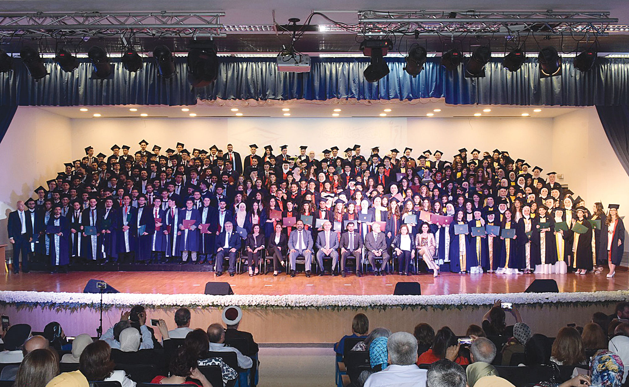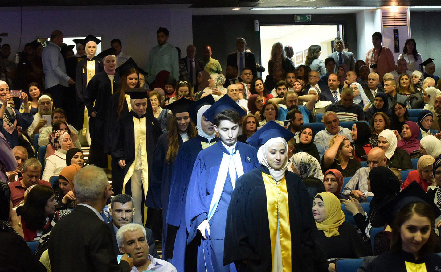 بدأ الاحتفال بكلمة ترحيب من مقدّم الحفل الدكتور محمد كمال الدين، ثمّ دخول موكب المتخرّجين في فرعي الفرنسي والإنكليزي وبلغ عددهم ٢٥٤ طالبًا وطالبة يتقدّمه رؤساء أقسام المرحلة الثانويّة السيدة فضيلة ذوق، والسيدة ريما القيسي، والأستاذ وائل شلق…