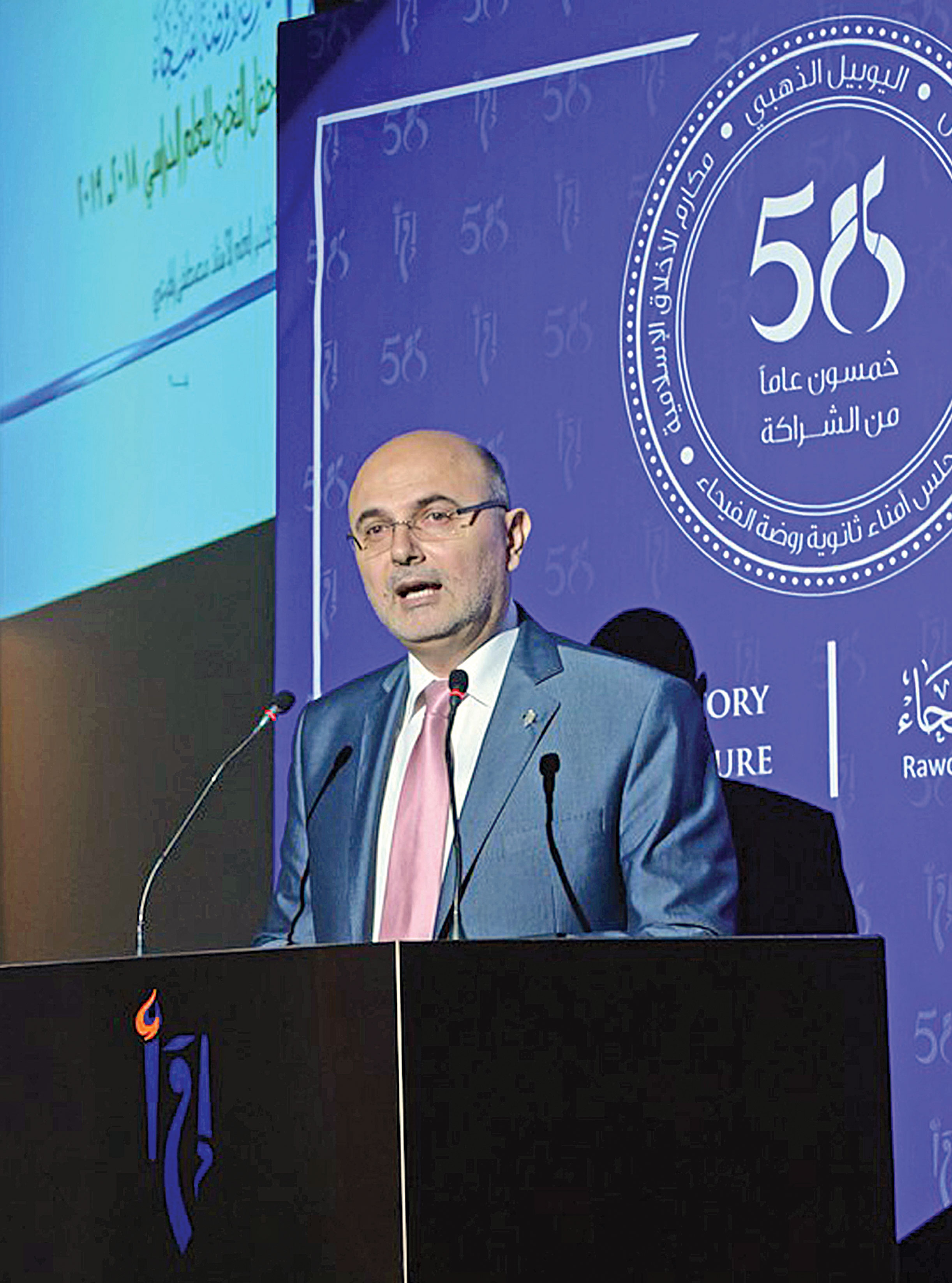 أضاف: «دأبت روضة الفيحاء على مدى سنوات أن تكون منارة تحافظ على كنوز إرثها وتتحدى الحاضر بصعوباته وترسم بإرادة صلبة المستقبل المضيء لأجيال أرادتها أن تكون روضوية فريدة، هي التربية تتطلب صلابة وحزمًا ولينًا وضبطًا وتوازنًا بين خطاب العقل والقلب».