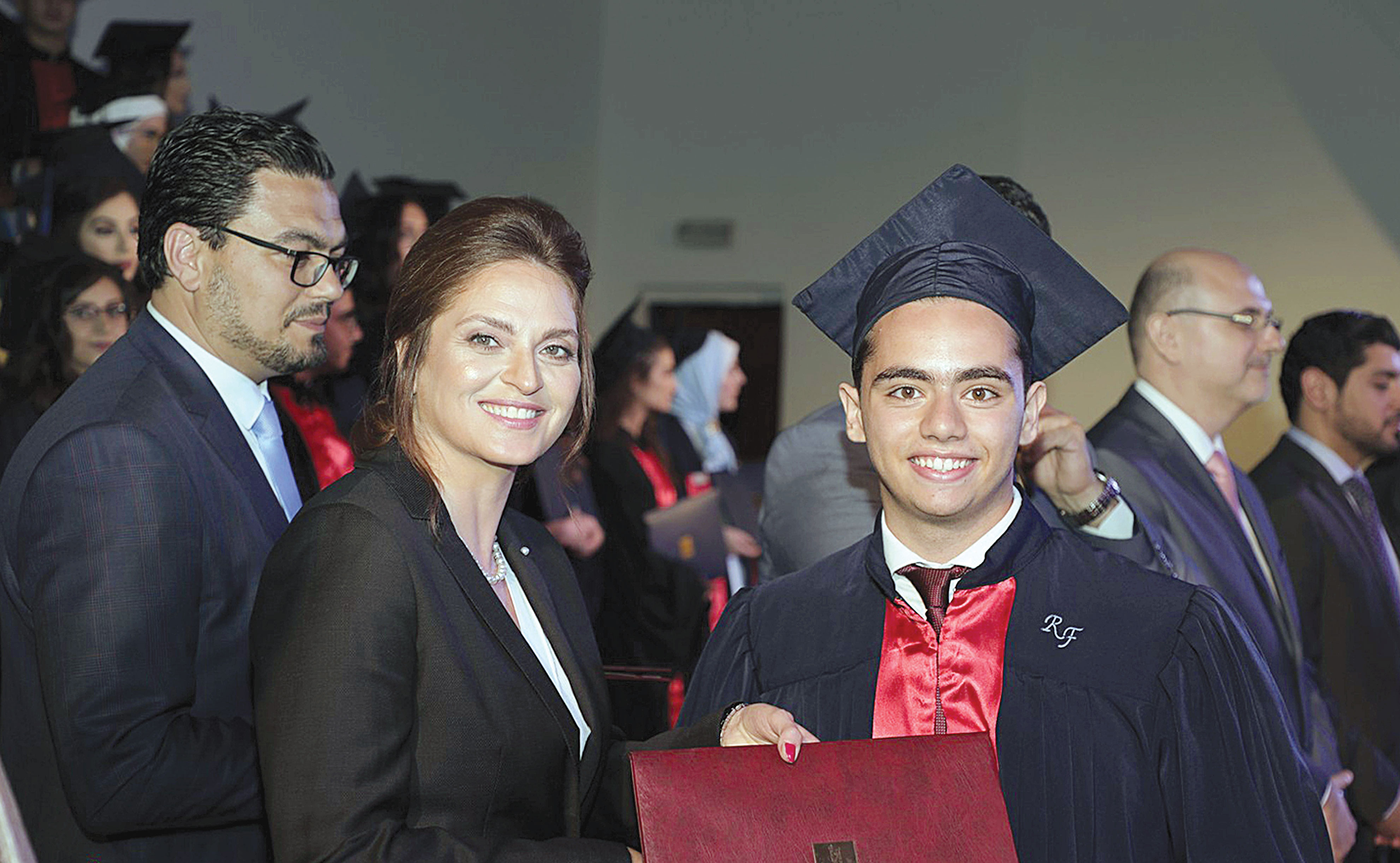 وألقى الطلاب: زيد خربطلي، ليلى معصراني، ليلى سيف كلمات الخريجين باللغات العربية والفرنسية والإنكليزية.