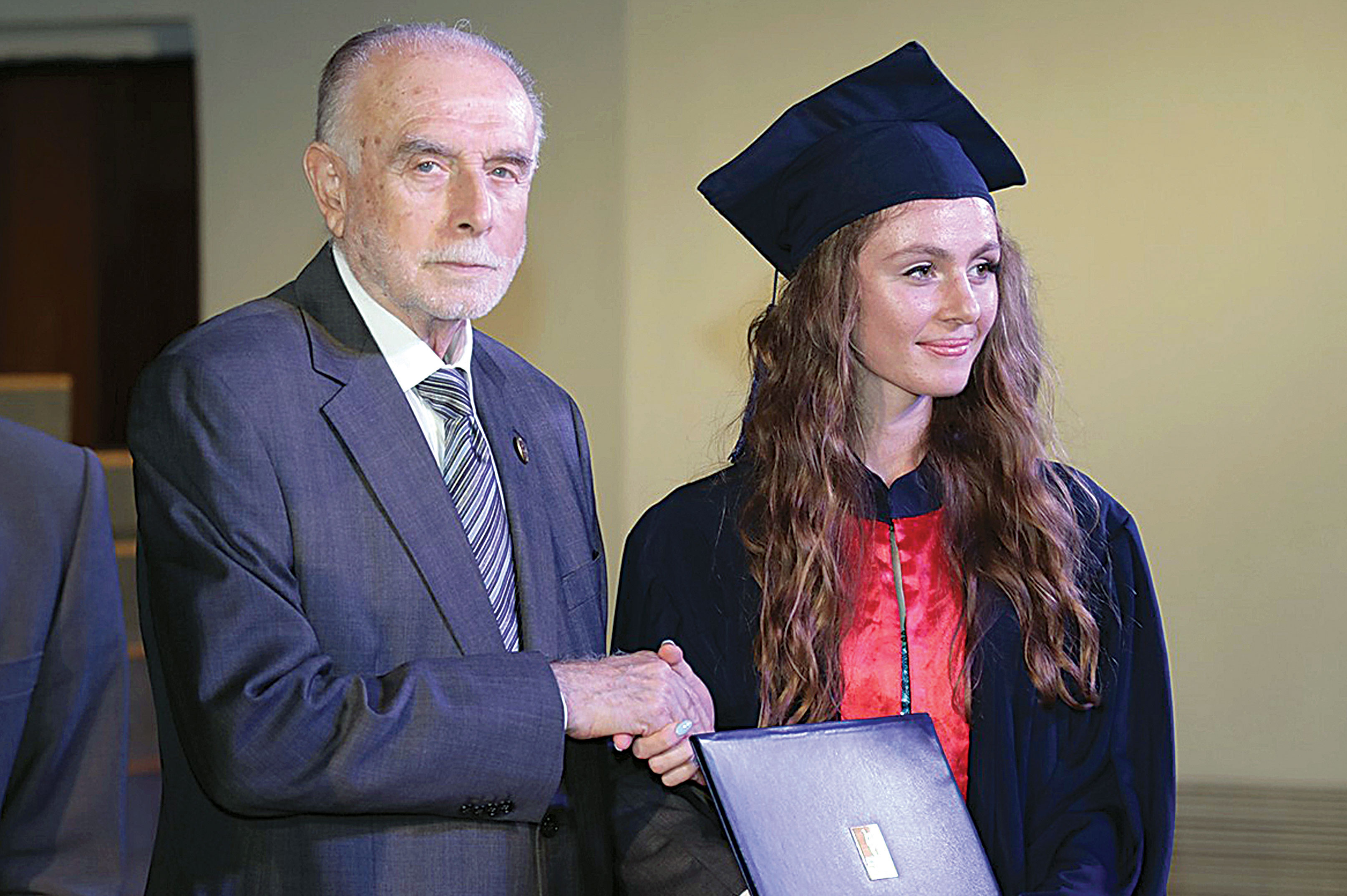 وبعد توزيع شهادات التخرّج على الطلاب والطالبات، قدّم المدير العام درعي تكريم عربون محبّة واحترام لسعادة السفير الشامسي، وللأستاذ عماد الأشقر، كما قدّم الخرّيجون درعًا للأستاذ فهمي كرامي رئيس جمعيّة خريجي الروضة تقديرًا لجهوده. وأعقب الاحتفال لقاء مودّة وكوكتيل.